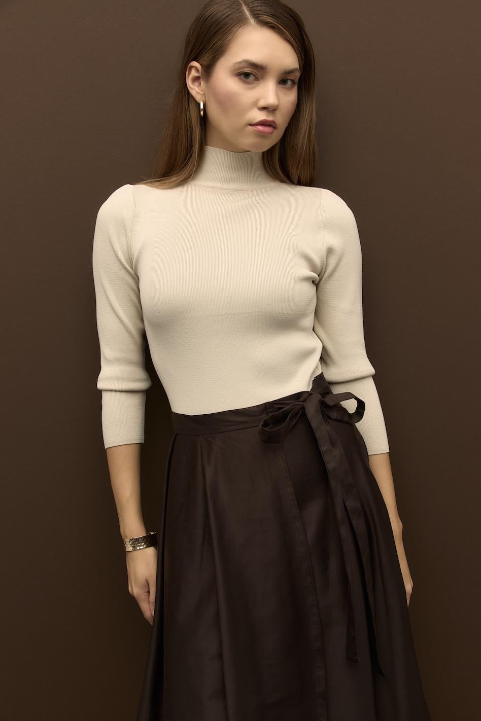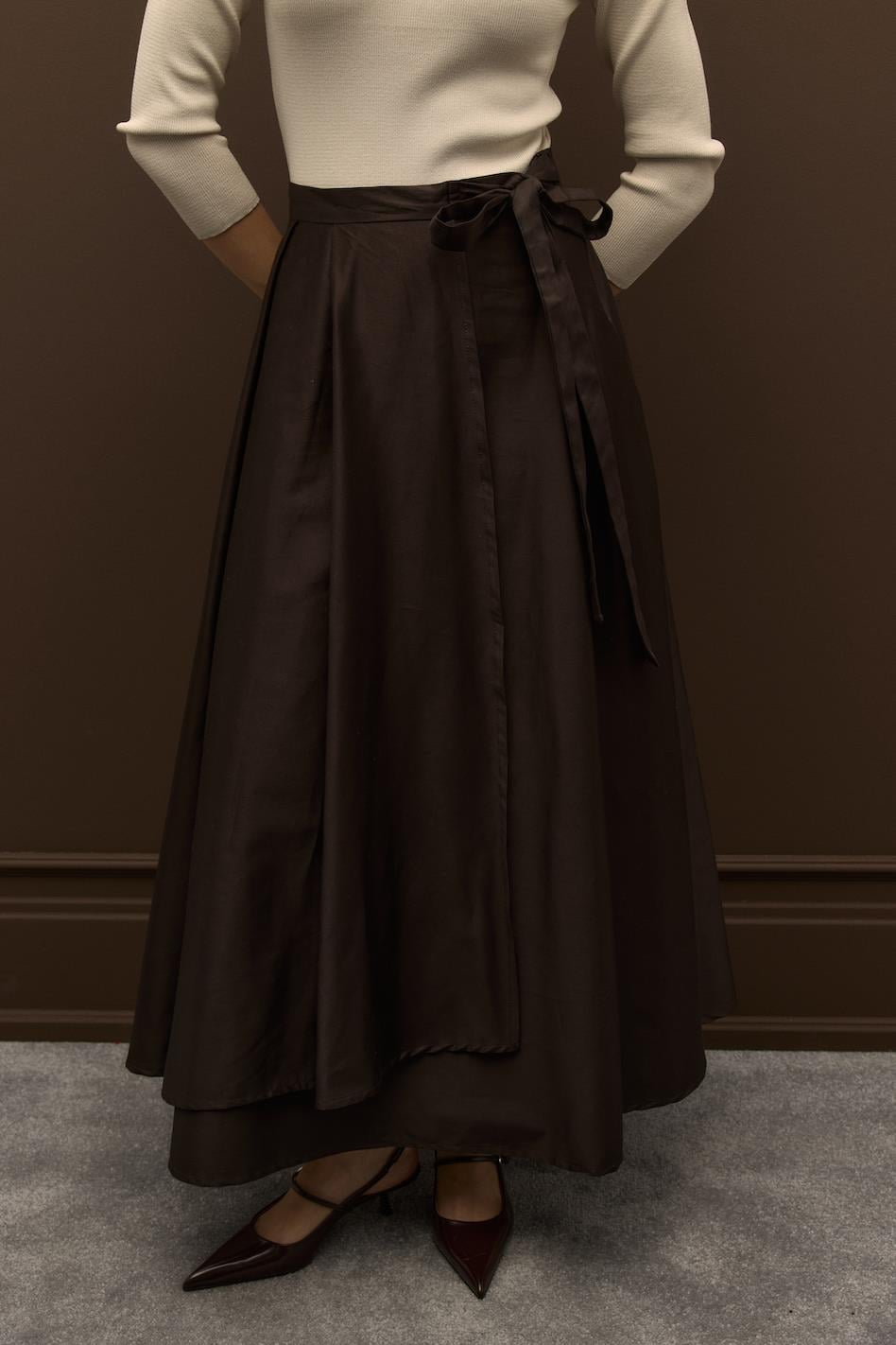 Anvelop Kapamalı Pamuk Gabardin Etek Kahverengi
