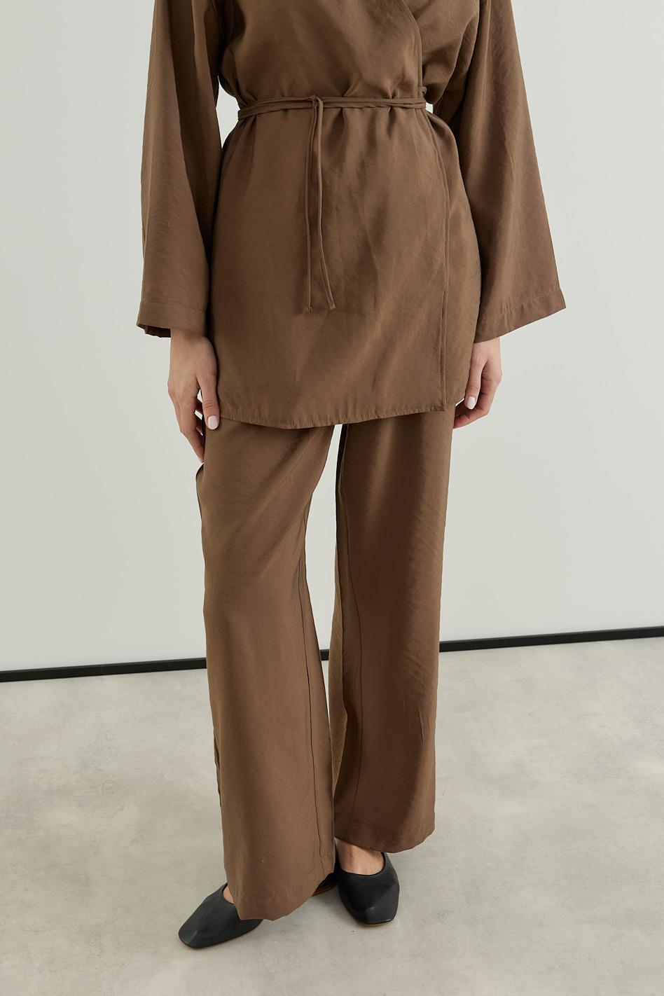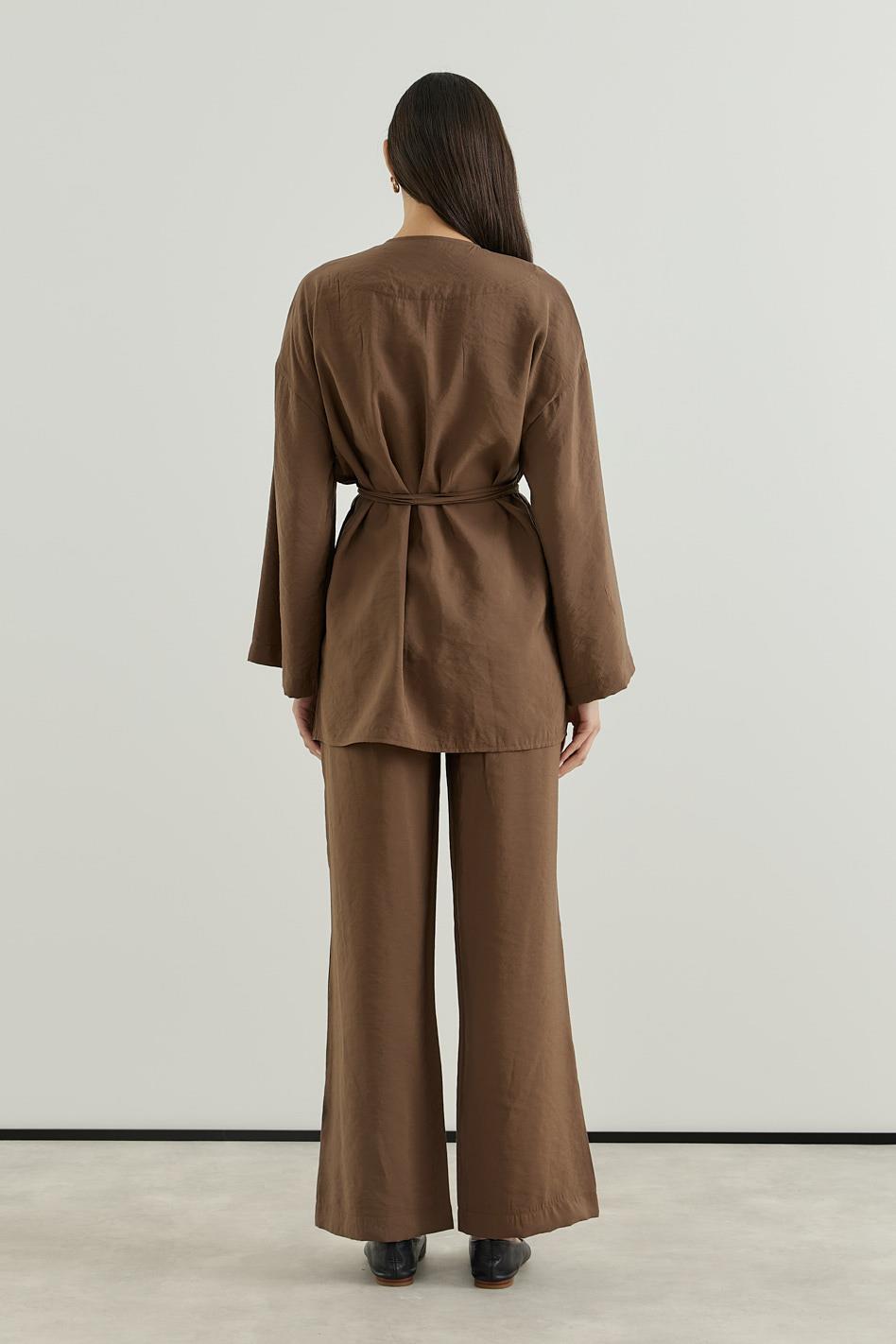 Anvelop Kapamalı Pantolonlu Kimono Takım Kahverengi