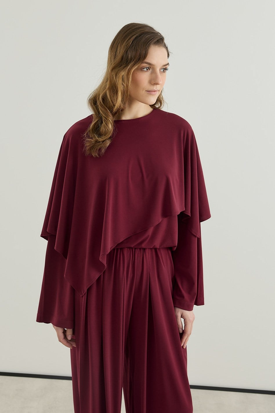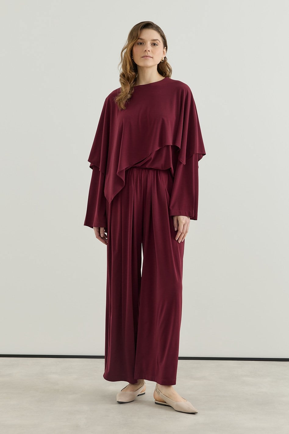 Asimetrik Kesim Tunik Pantolon Sandy Takım Bordo