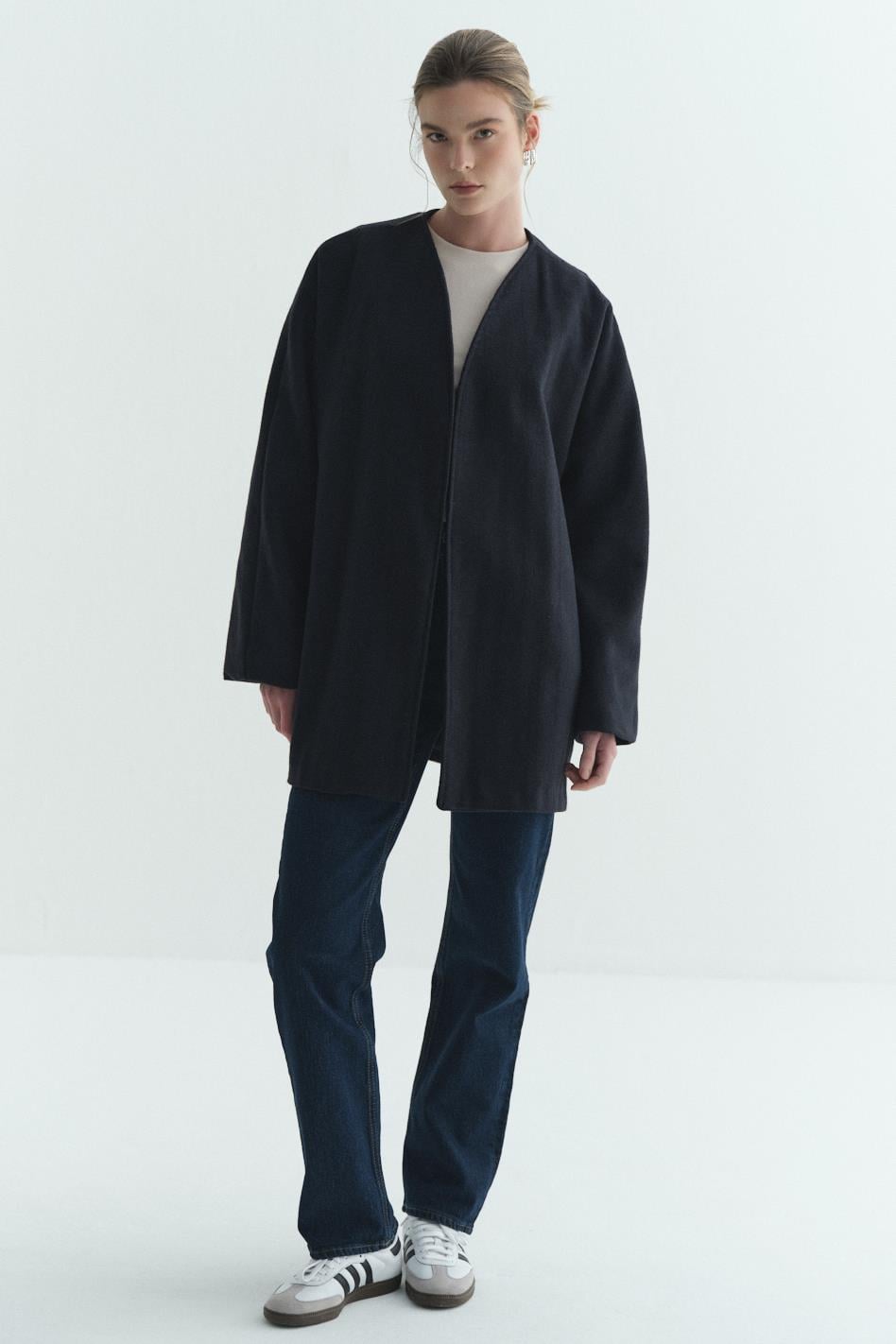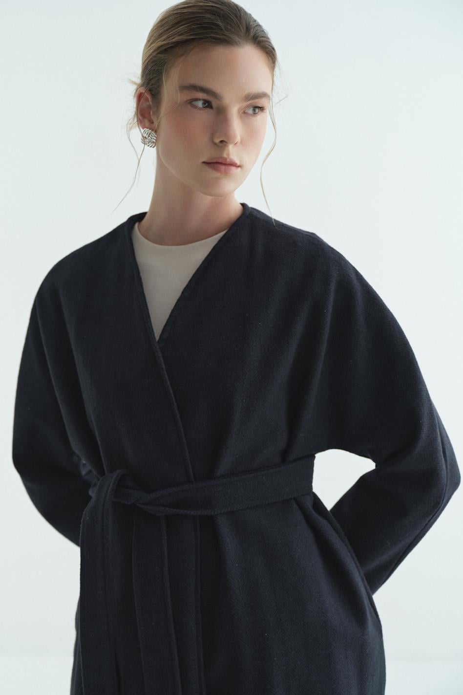 Astarlı Kaşe Kimono Balıksırtı Lacivert