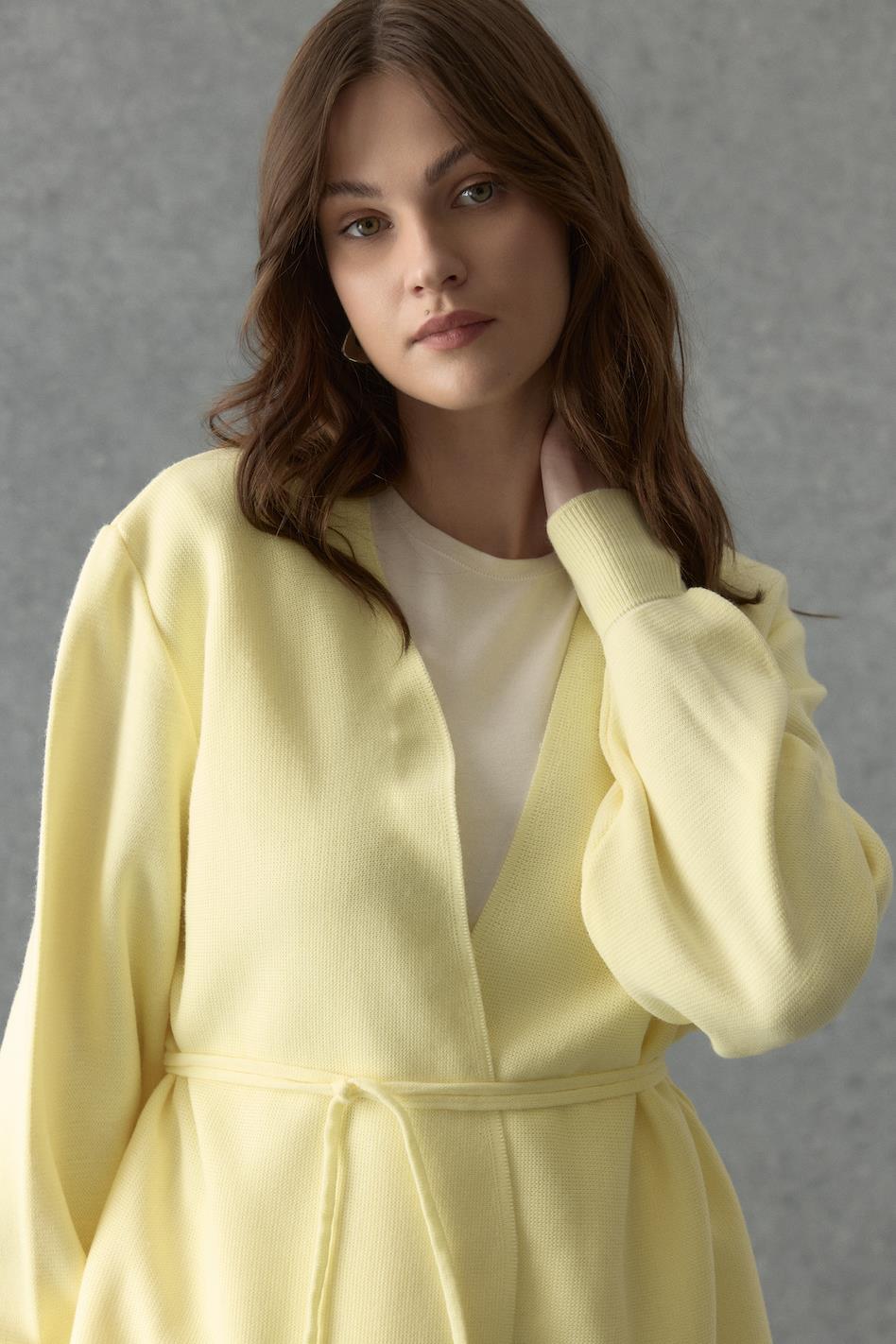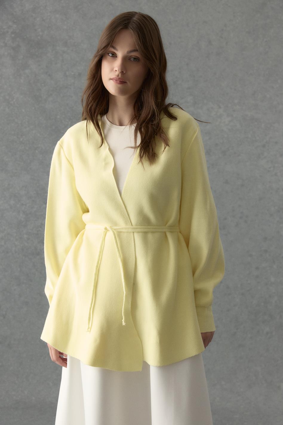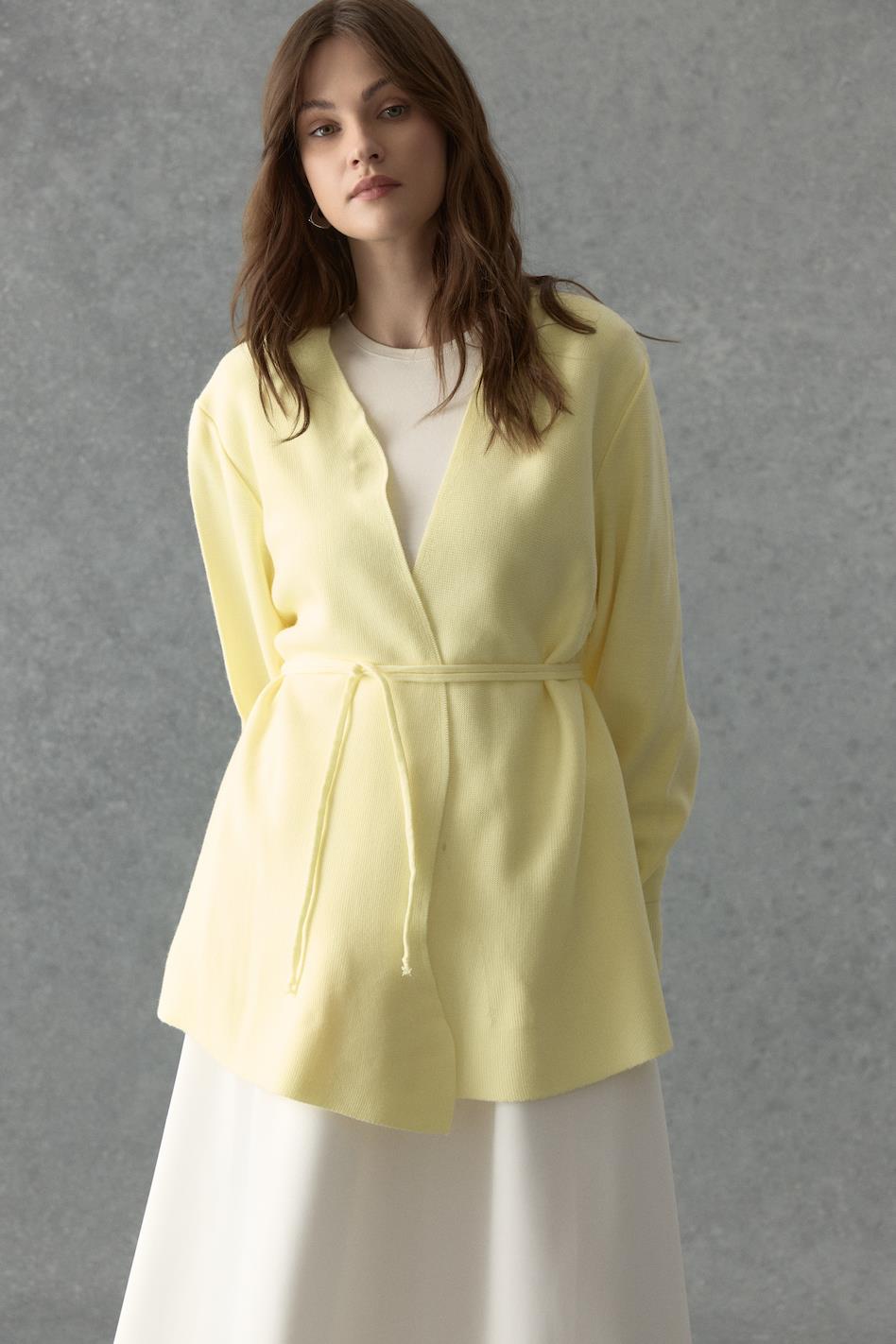 Biye Kemerli Çelik Örme Triko Hırka Soft Sarı