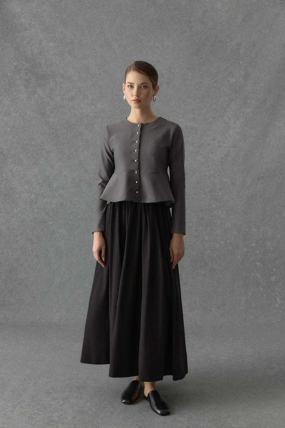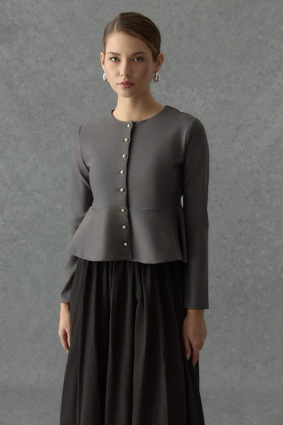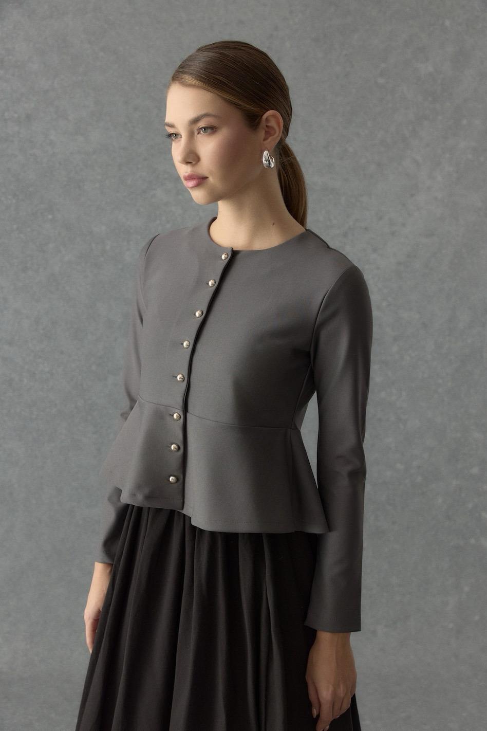 Çelik interlok Sık Düğmeli Volanlı Hırka Füme