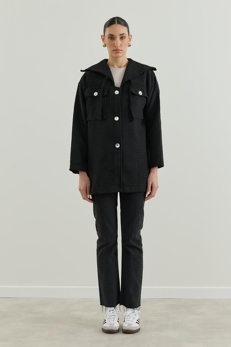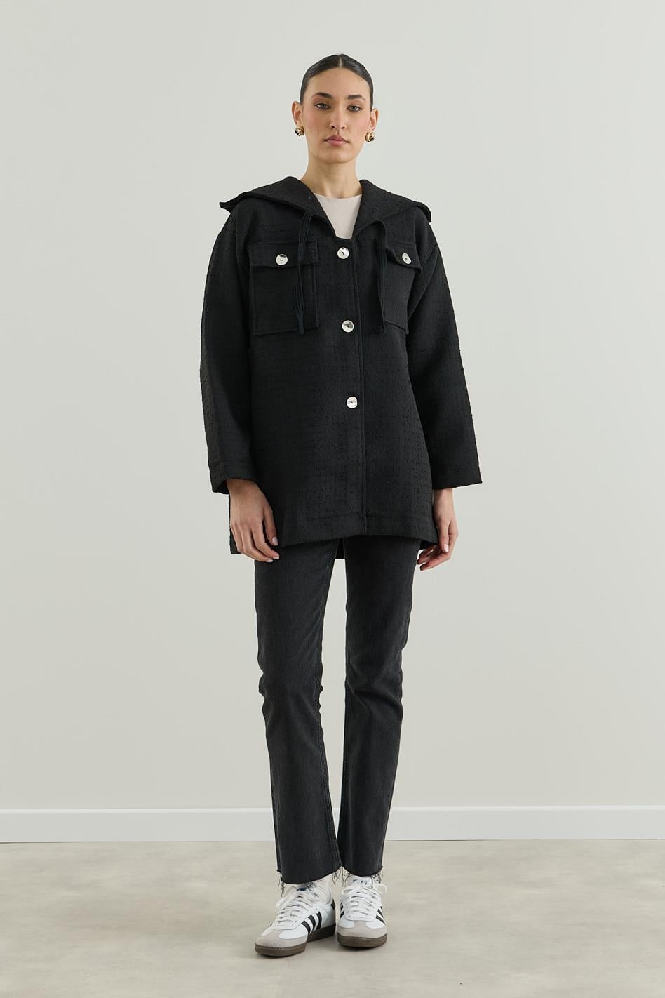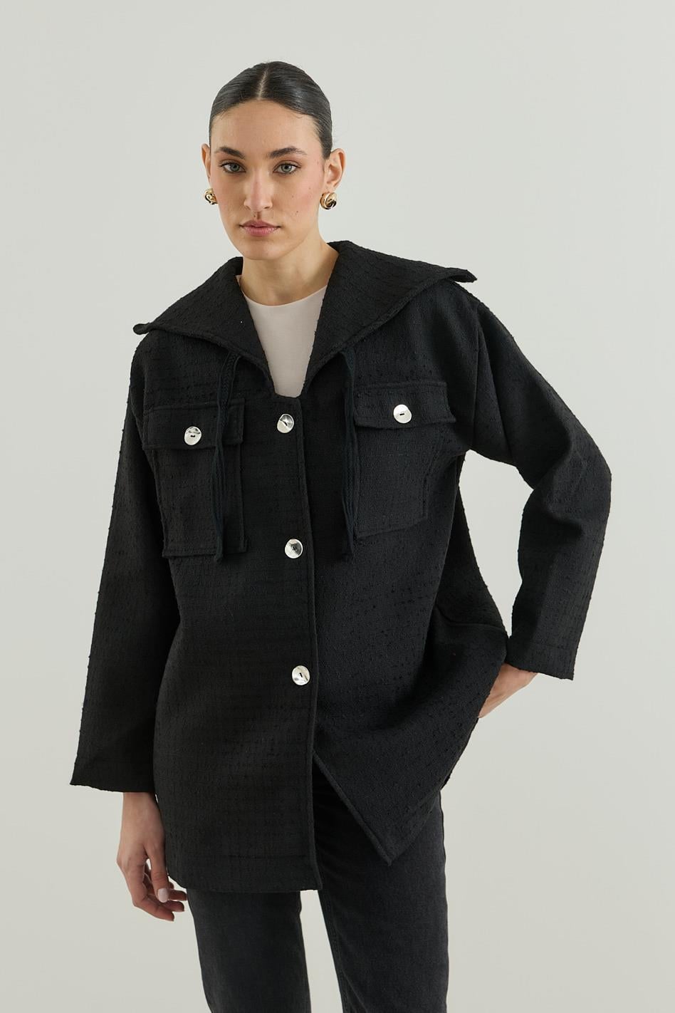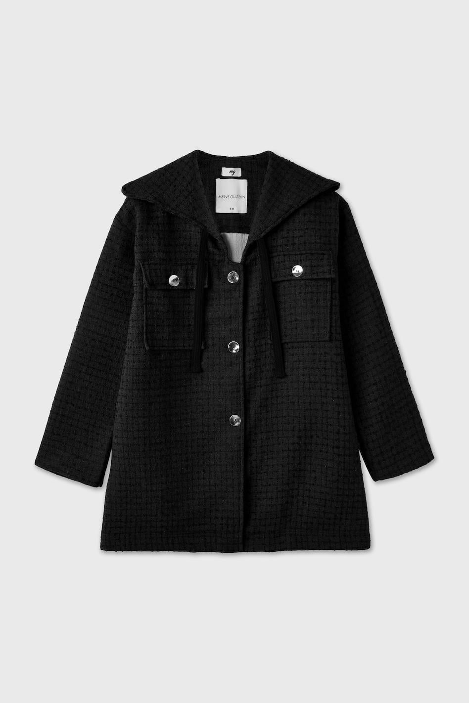 Denizci Yakalı Tüvit Ceket Siyah