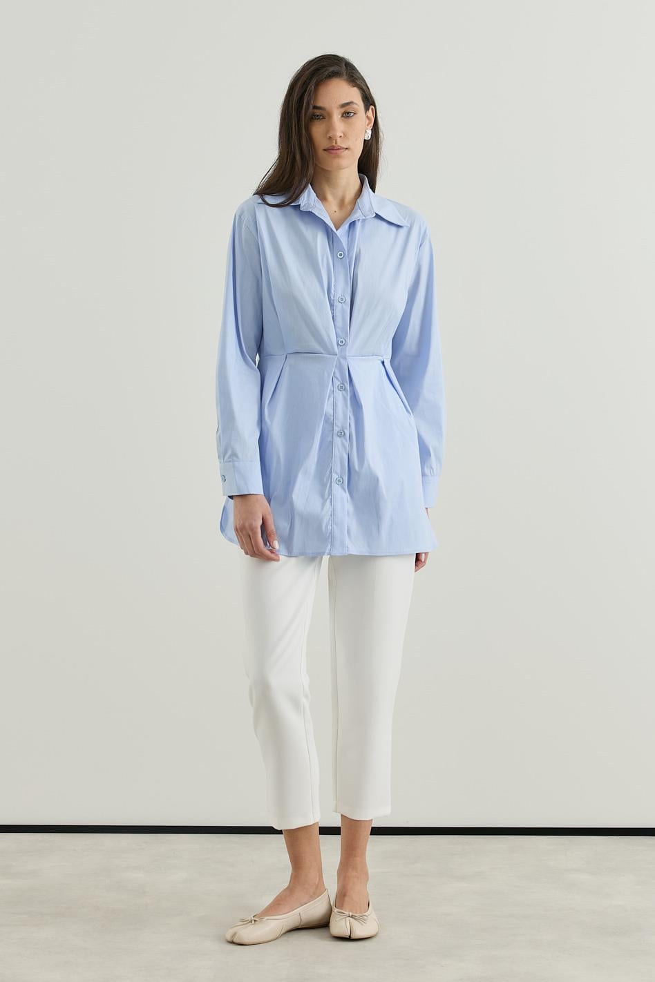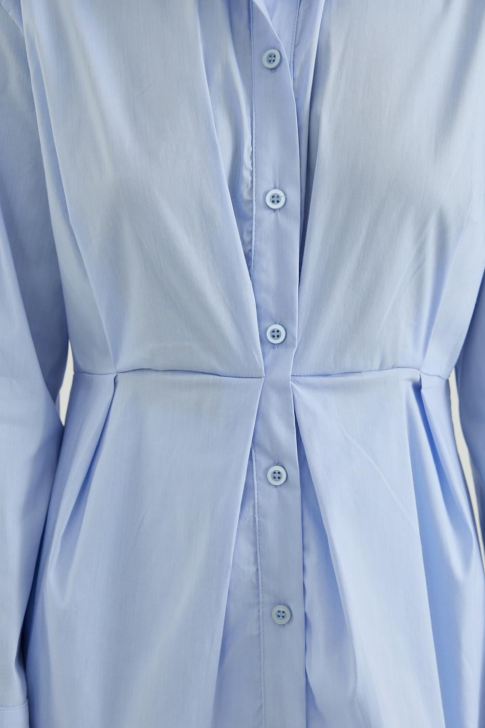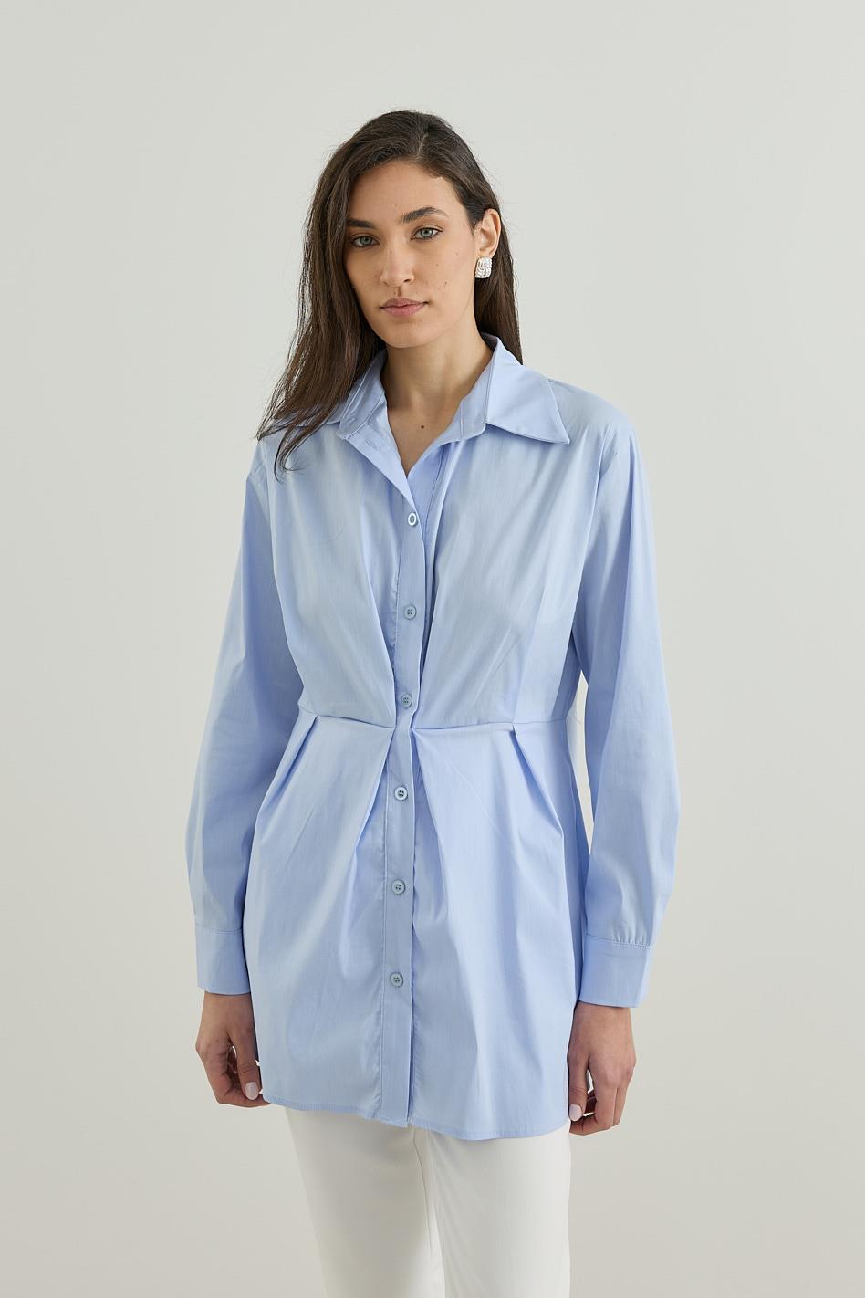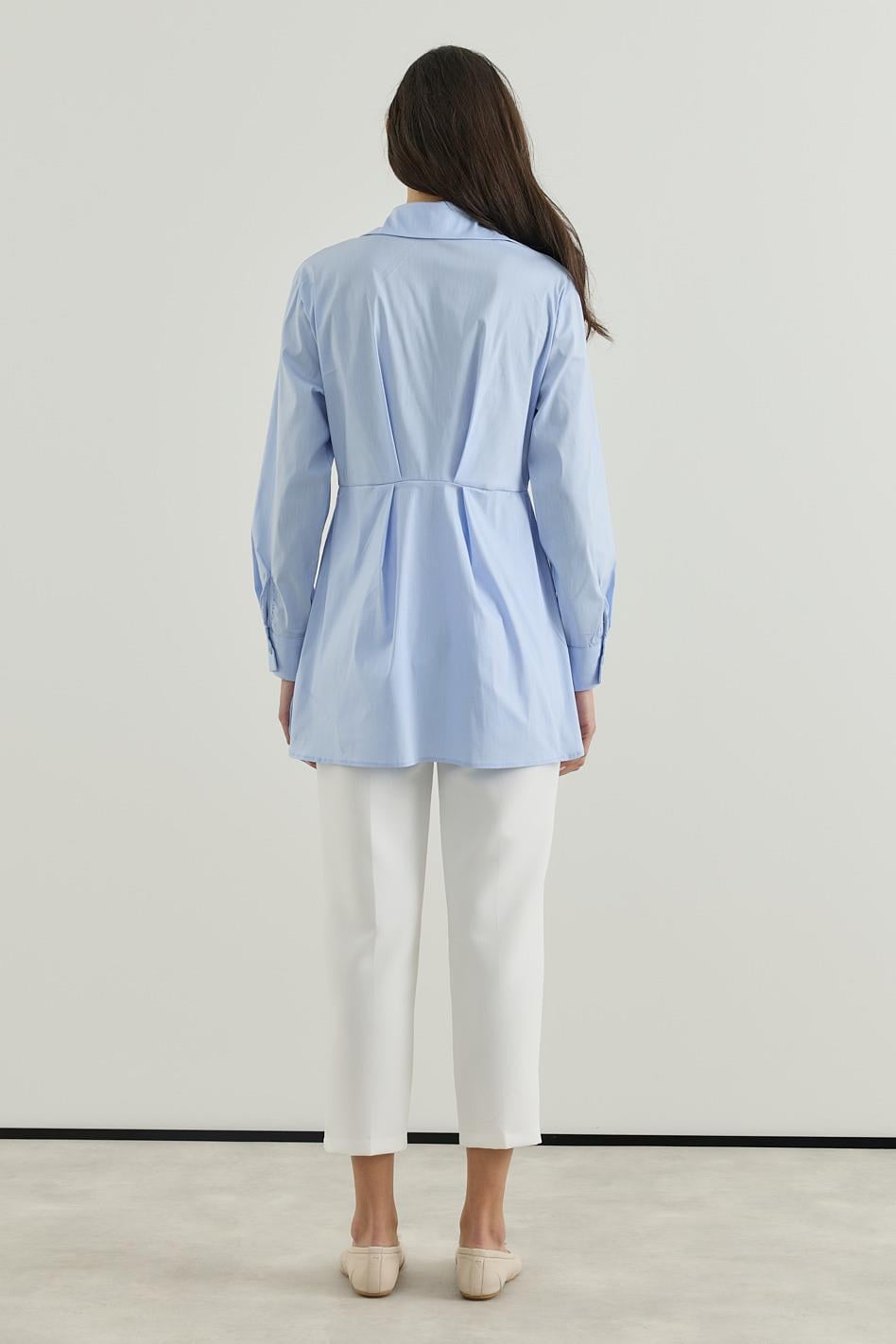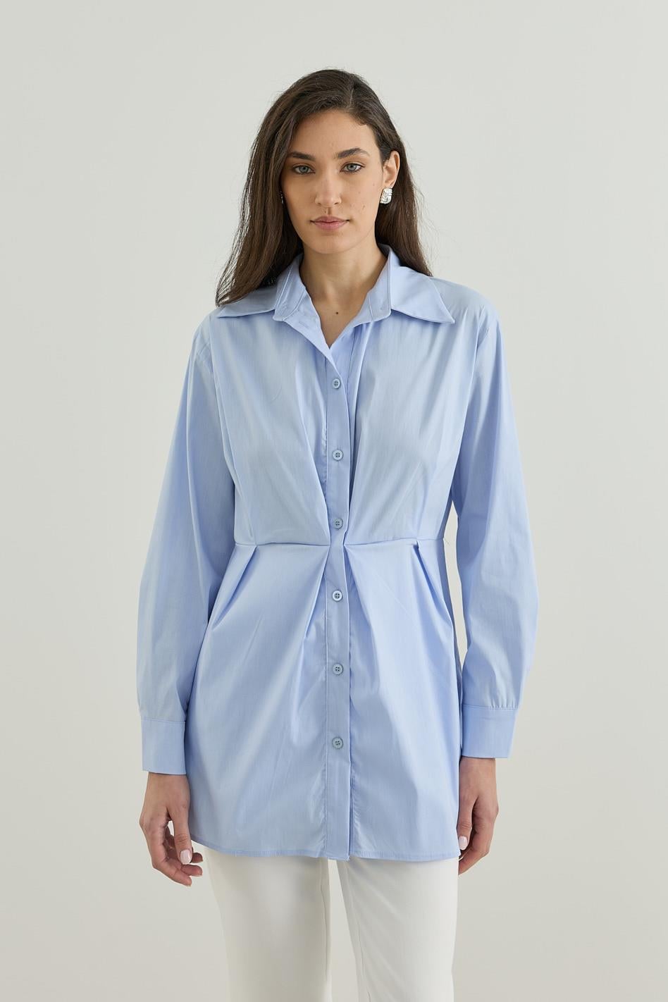 Belden Oturtmalı Pamuk Poplin Gömlek Mavi
