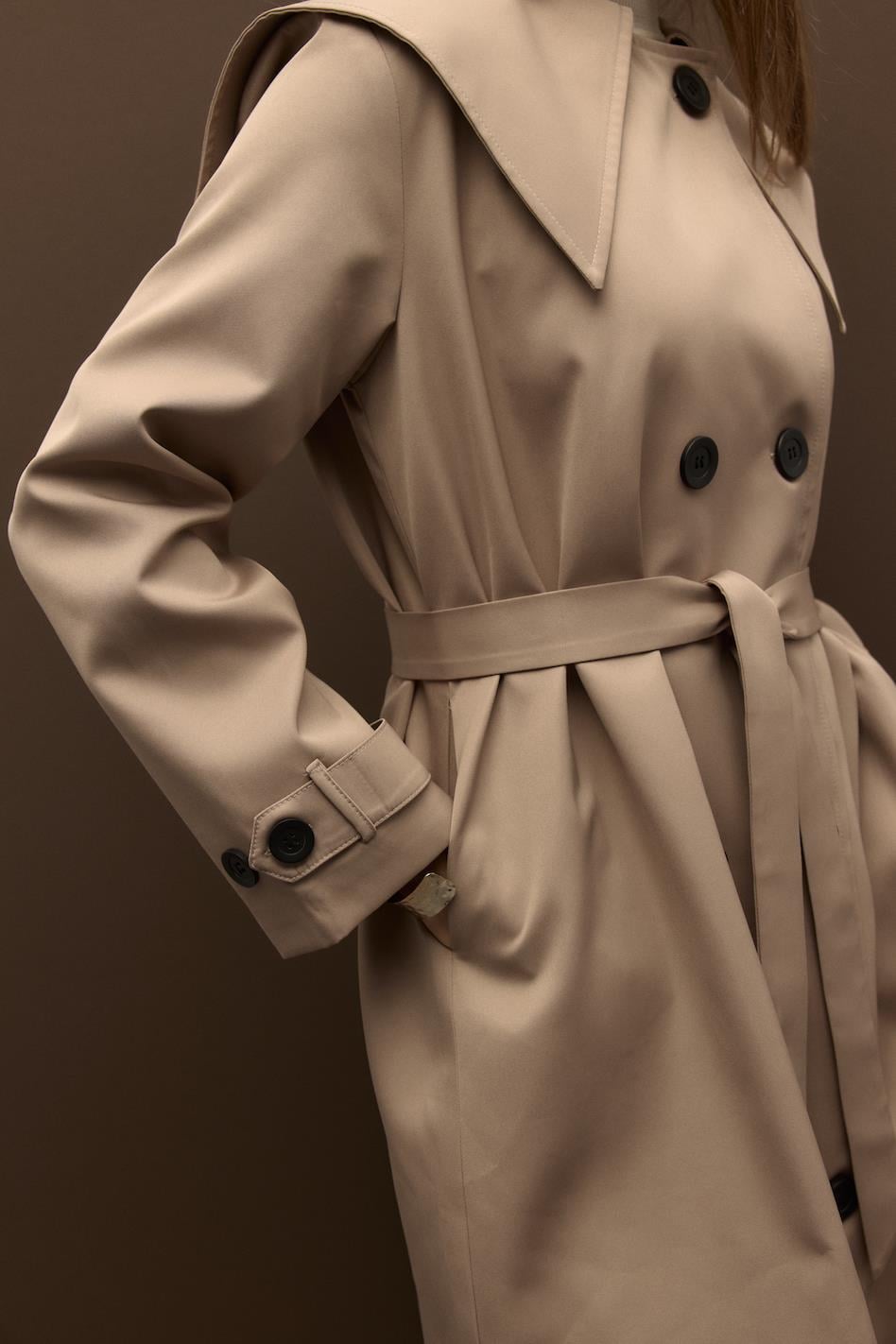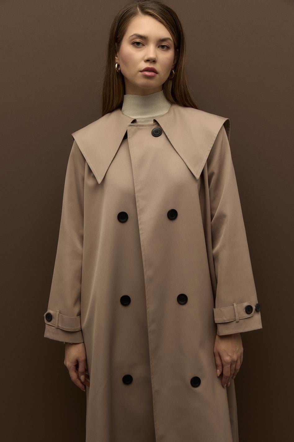 Elora Yaka Detaylı Pamuklu Gabardin Kruvaze Trençkot Vizon