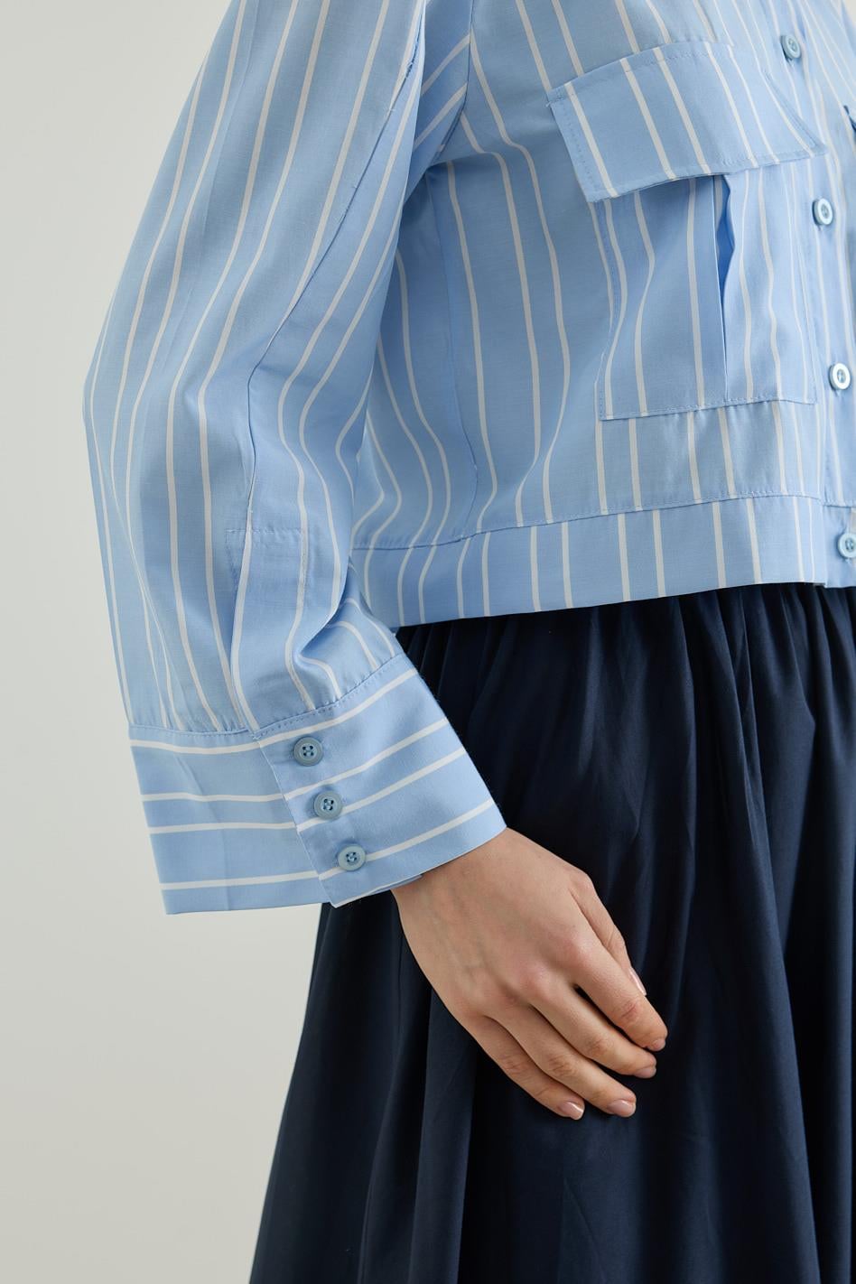Cepli Çizgili Poplin Kısa Gömlek Mavi