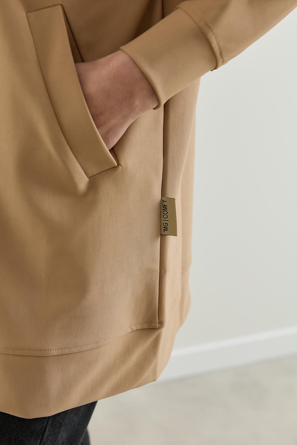 Kapüşonlu Fermuarlı Sweatshirt Camel
