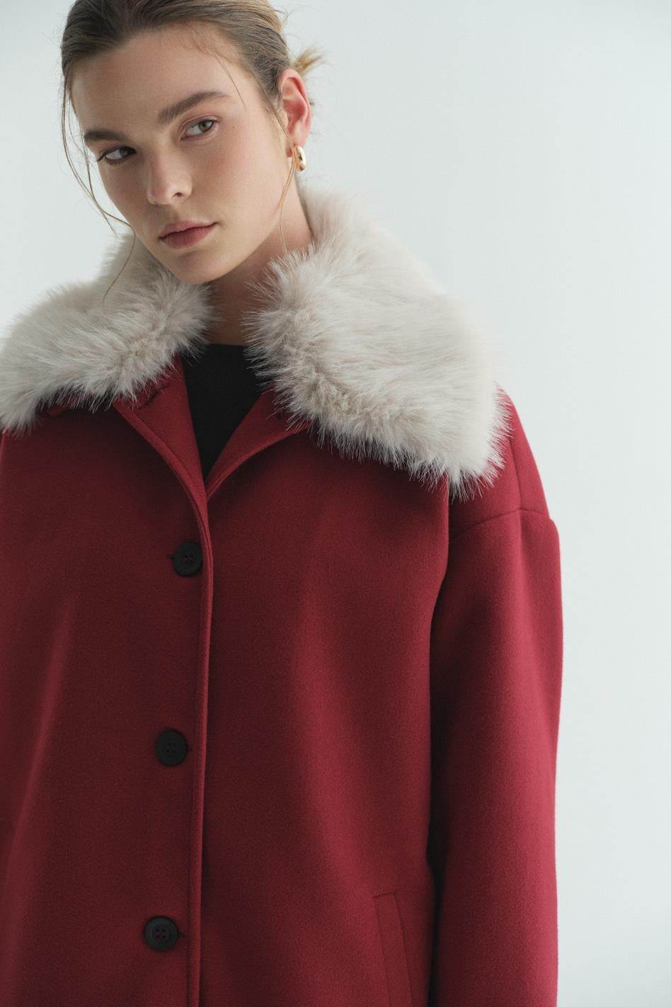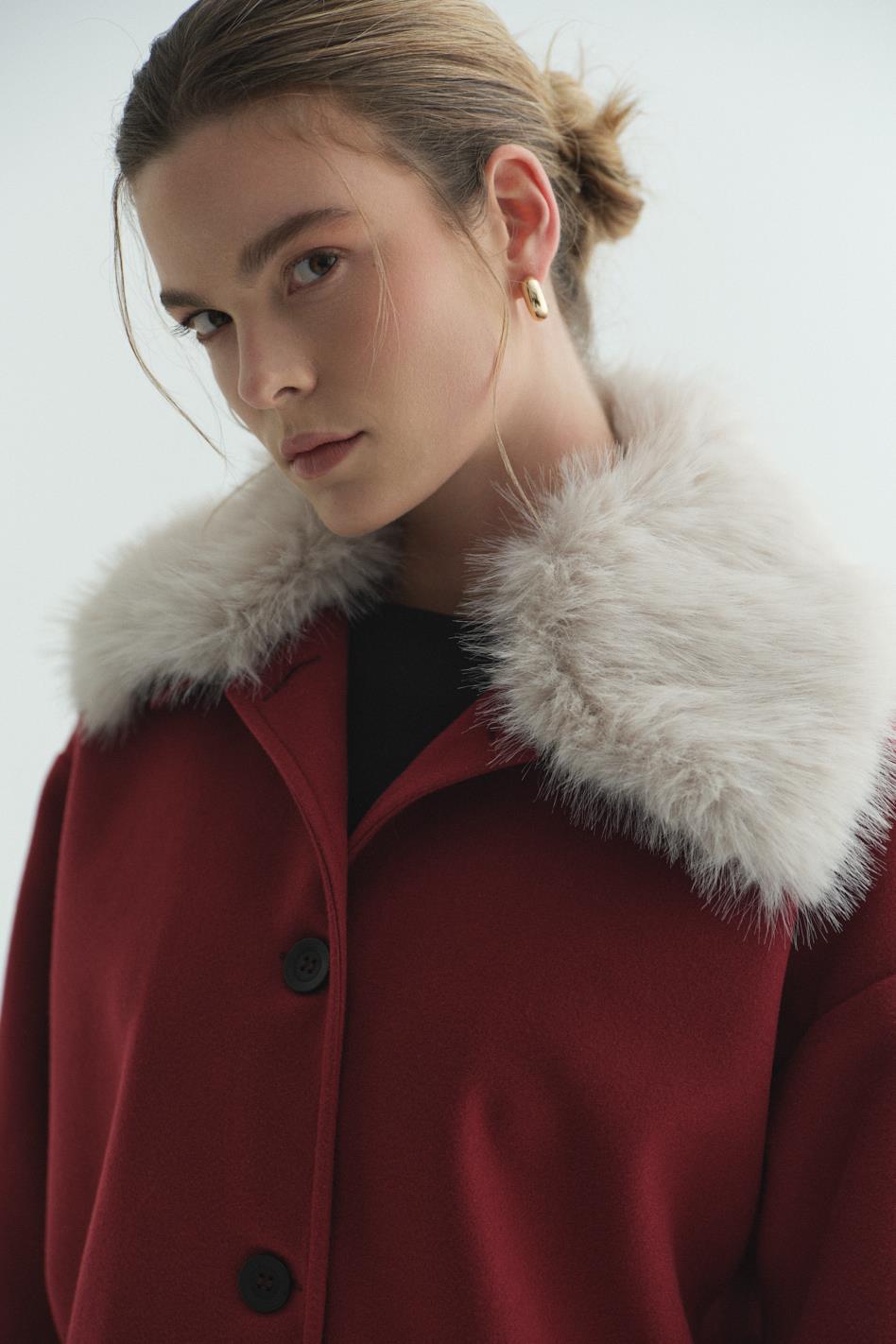 Kürk Yakalı Kaşe Bordo