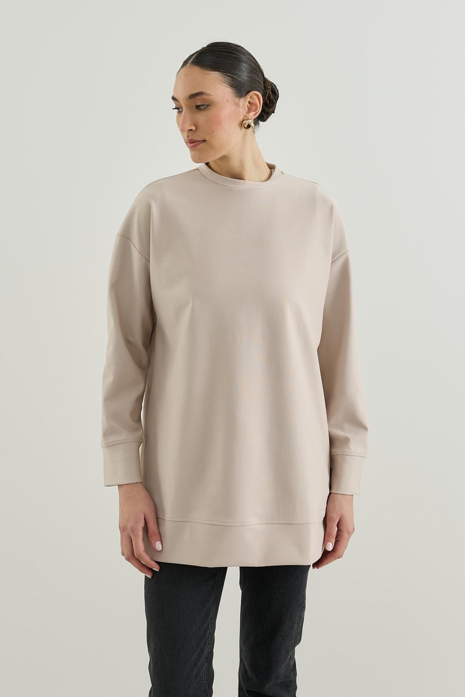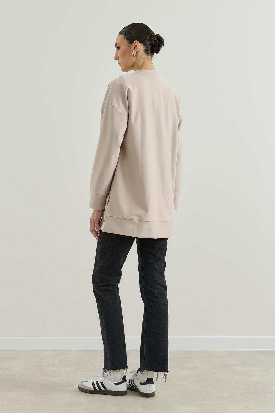 Üç İplik Kapüşonlu Fermuarlı Sweatshirt Taş