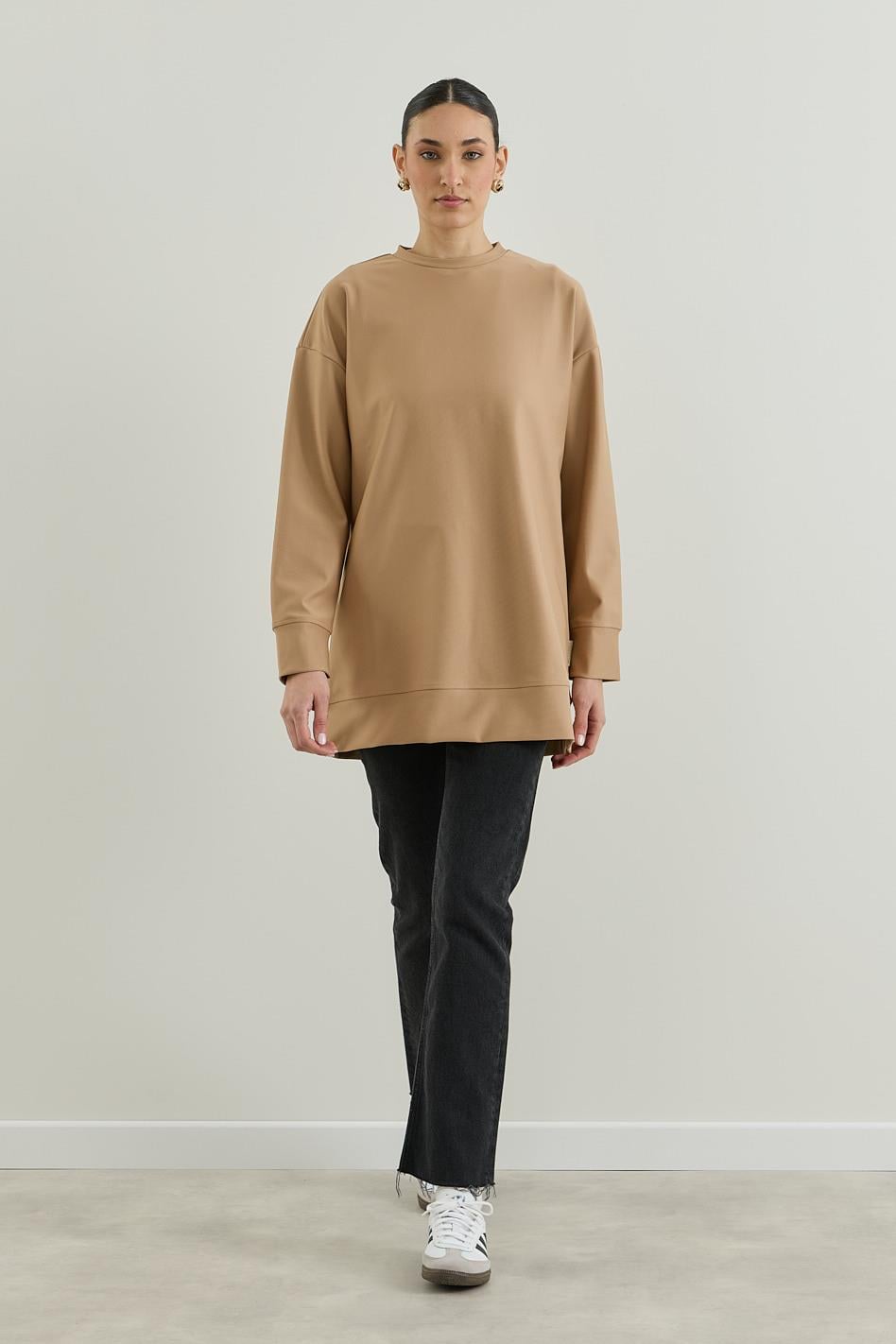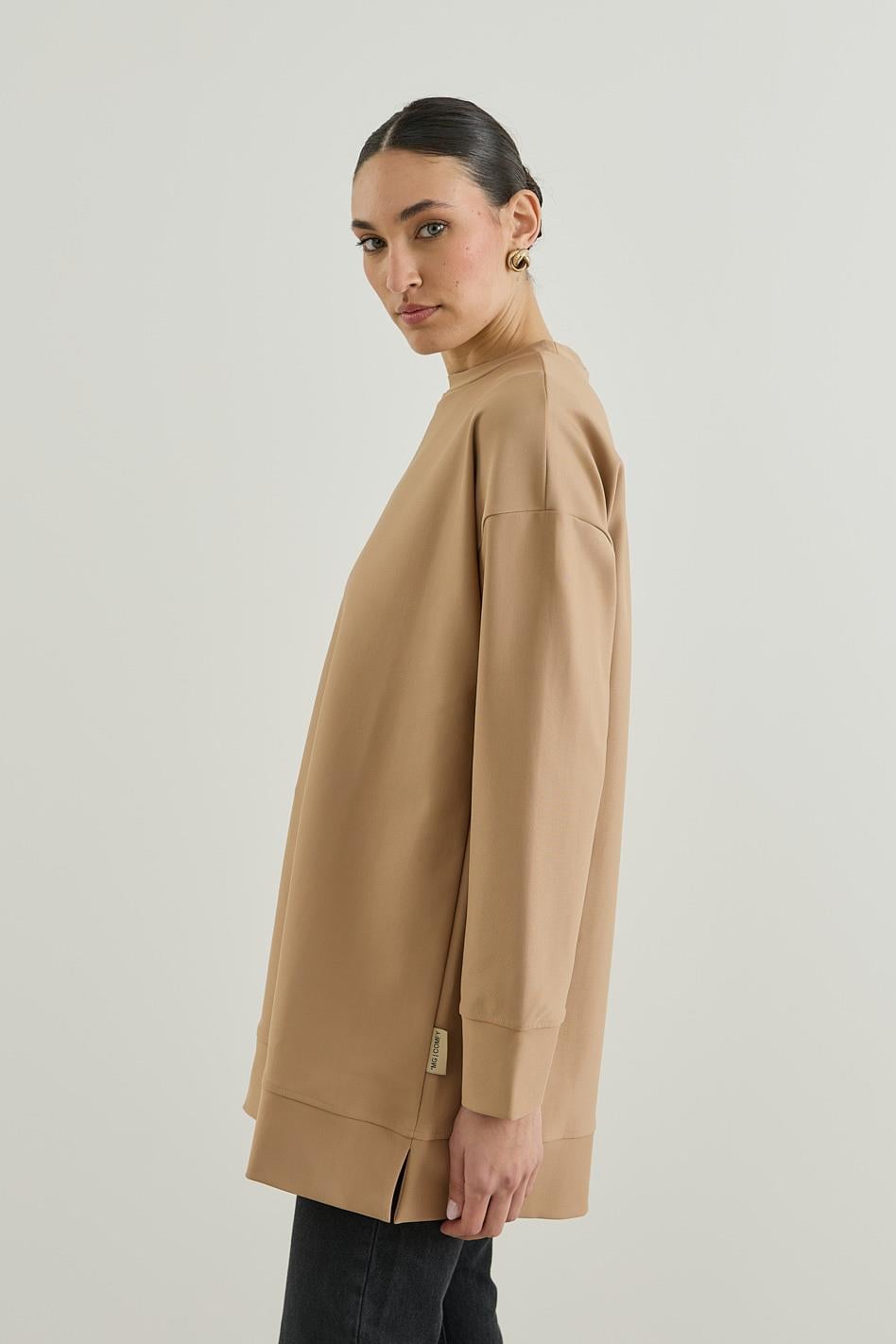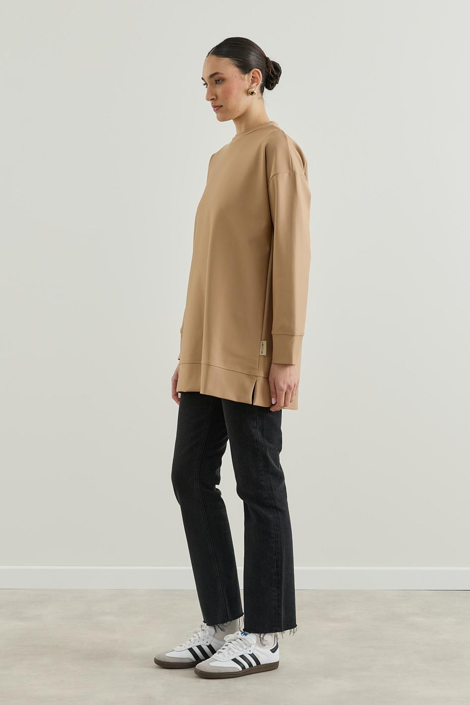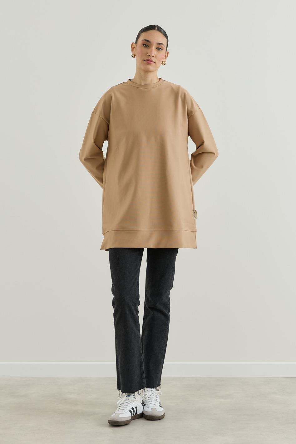 Üç İplik Kapüşonlu Fermuarlı Sweatshirt bej
