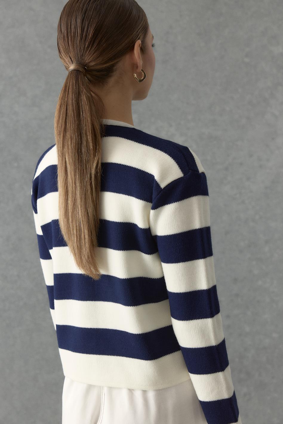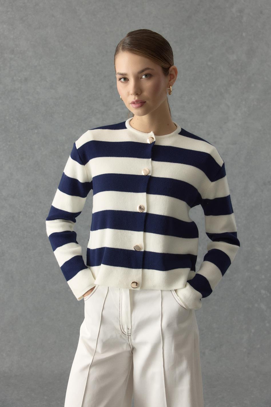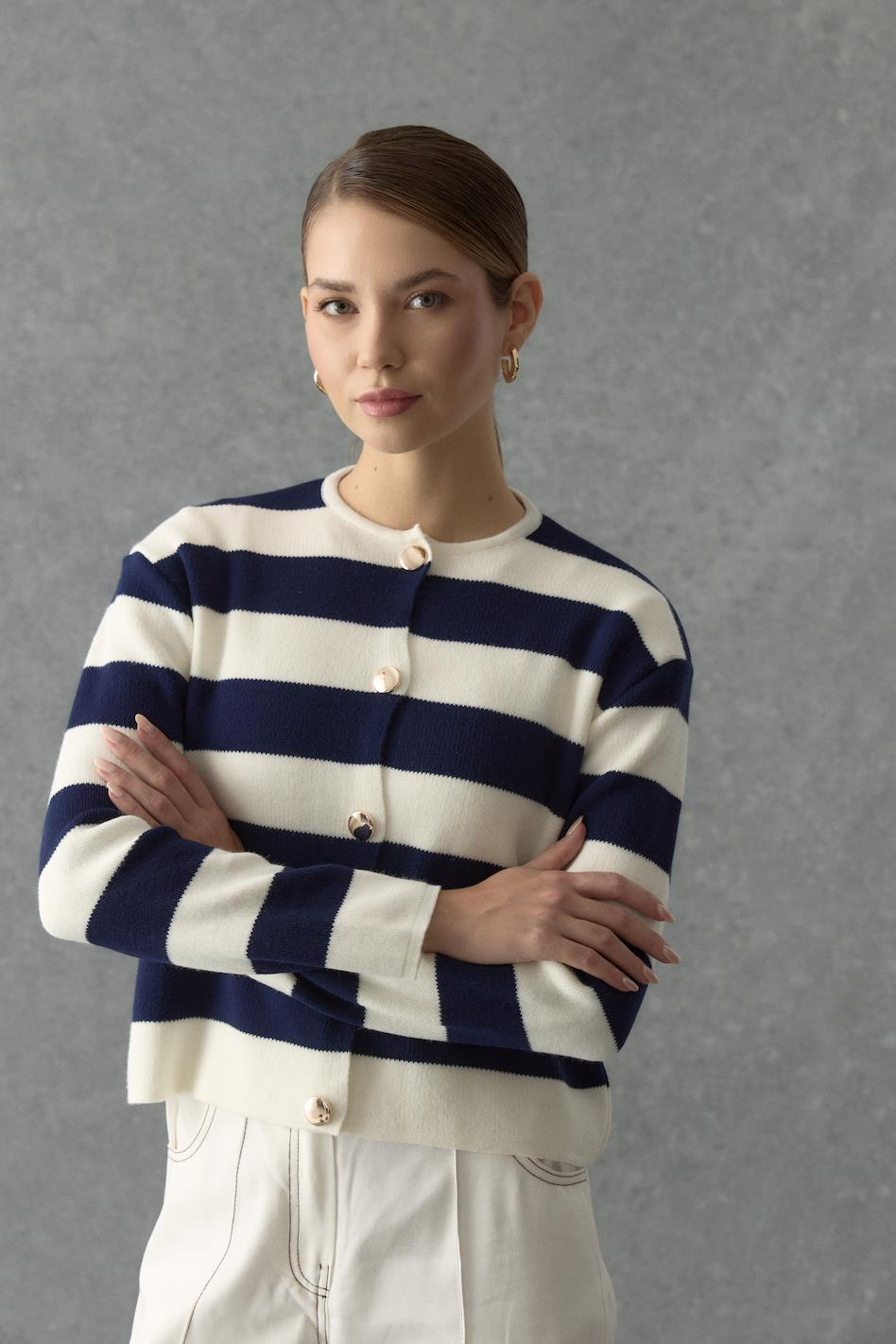 Kayla Çizgili Triko Hırka Krem Lacivert
