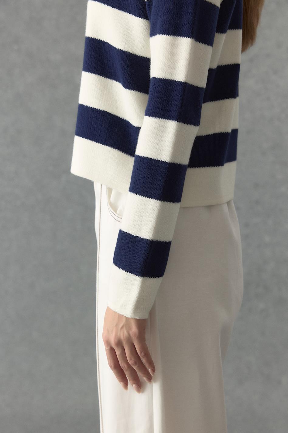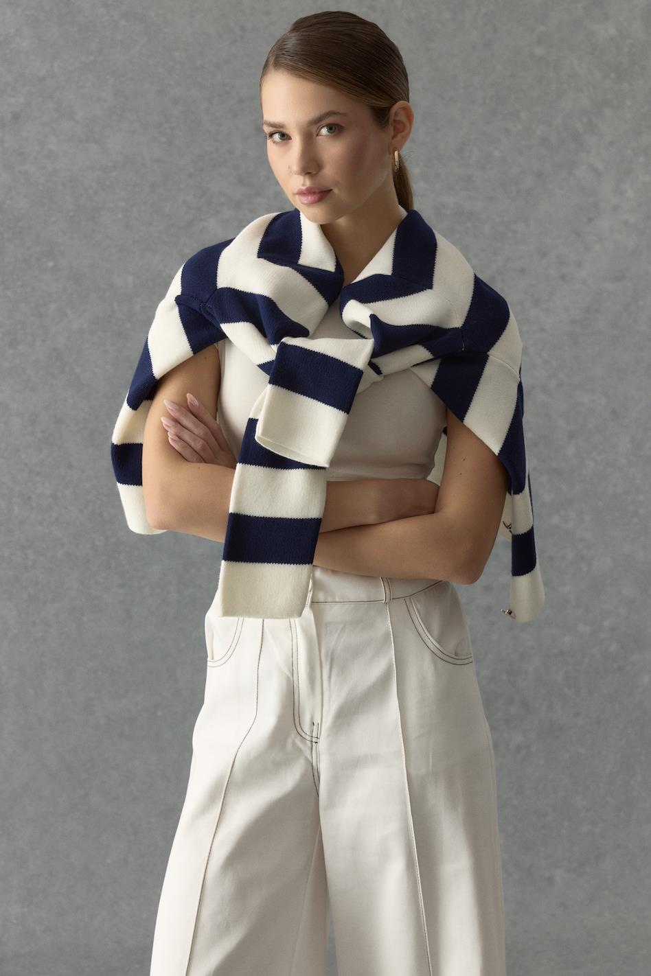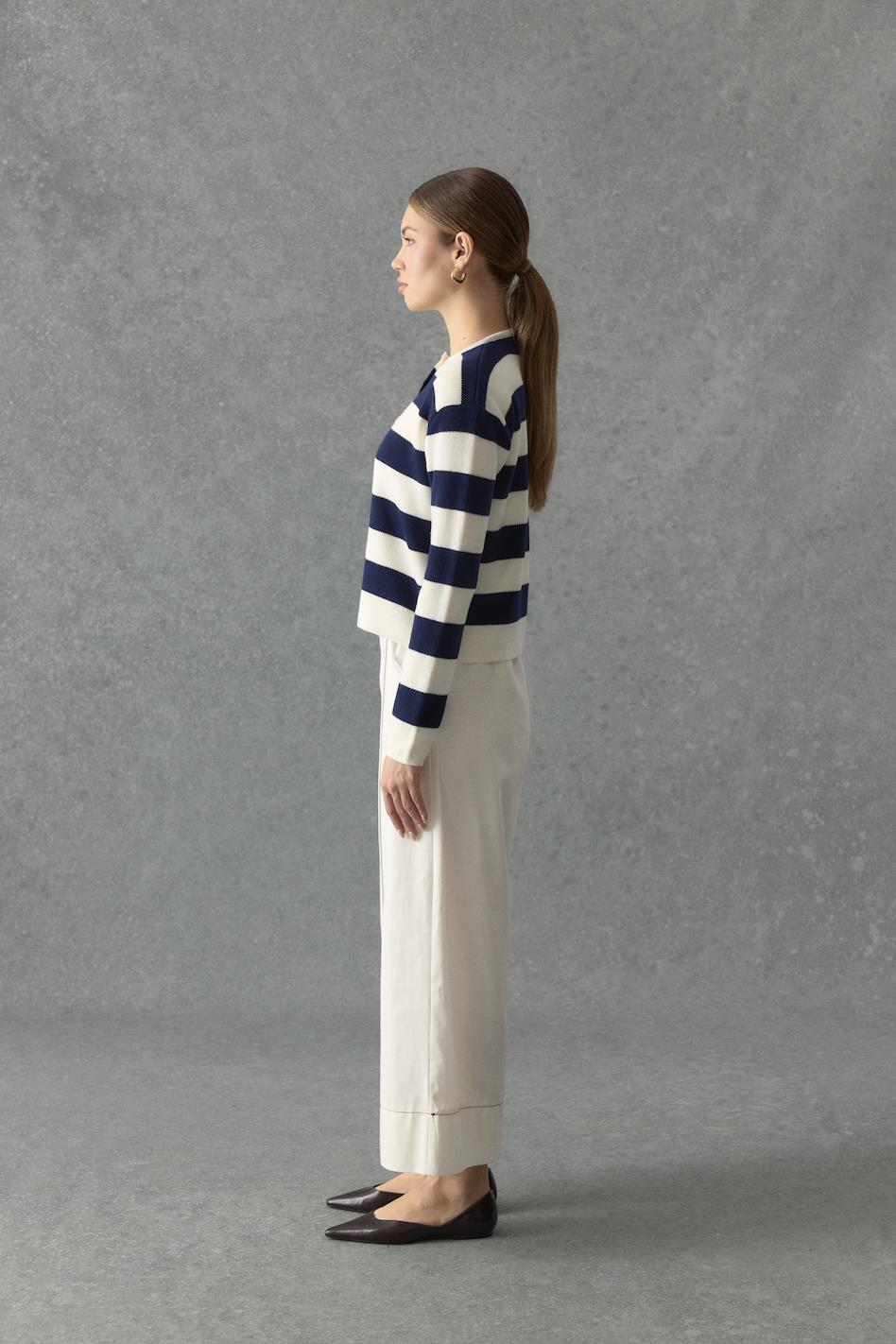 Kayla Çizgili Triko Hırka Krem Lacivert