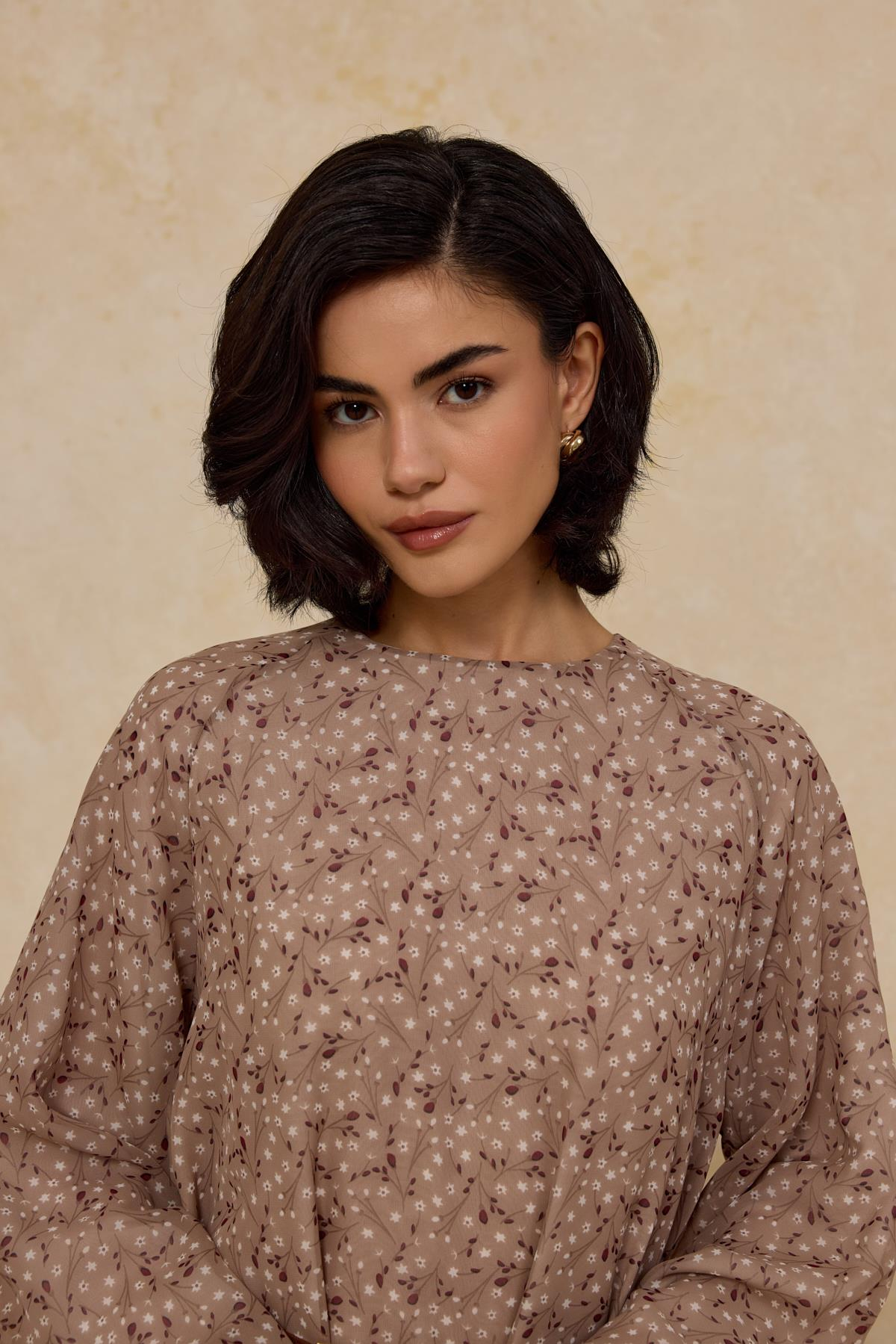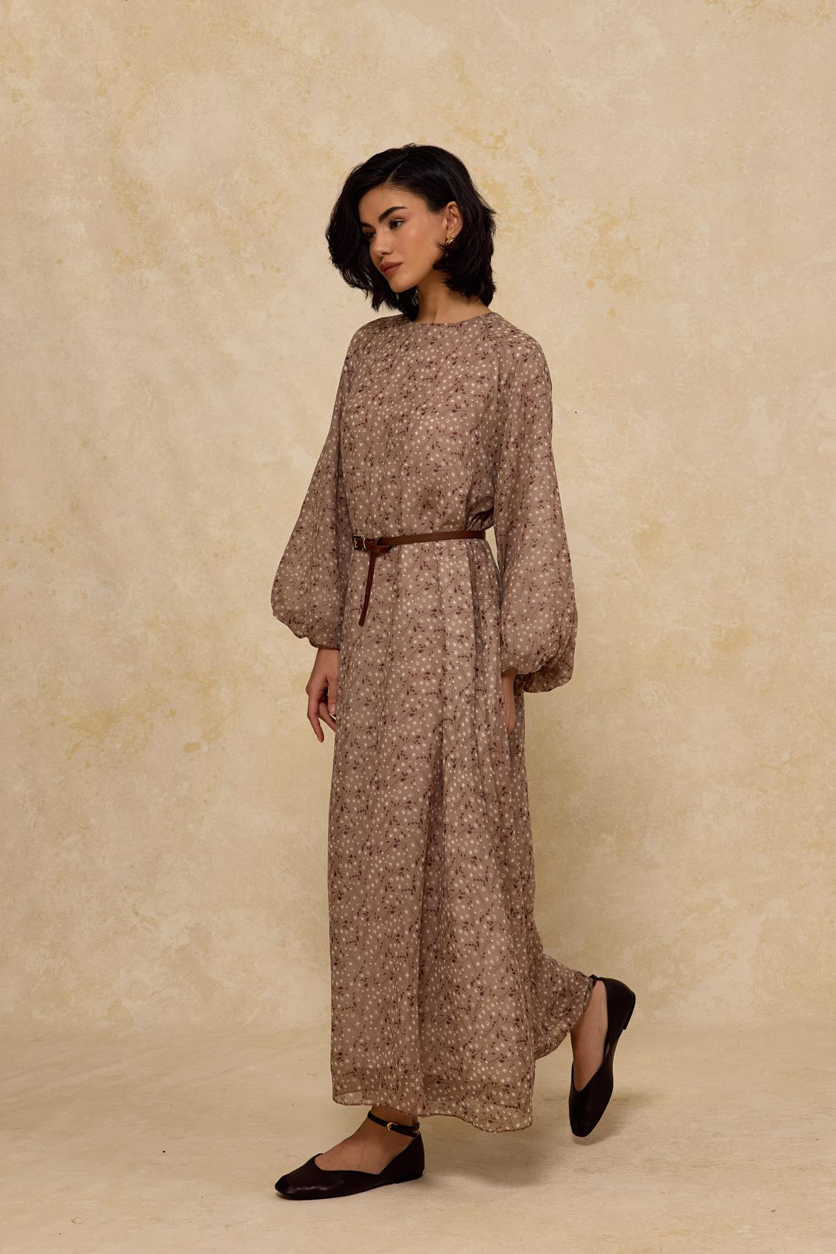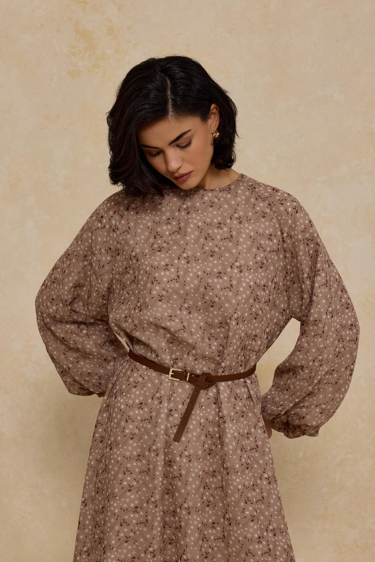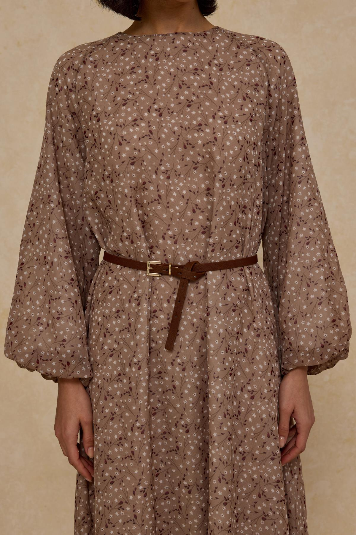 Kemerli Şifon Elbise Bej