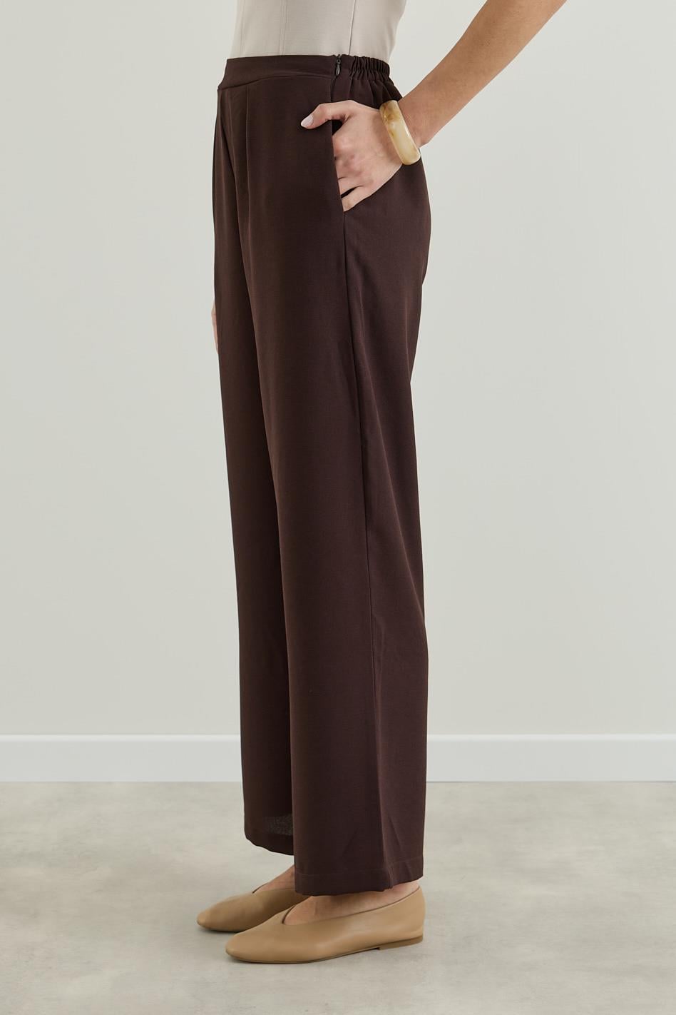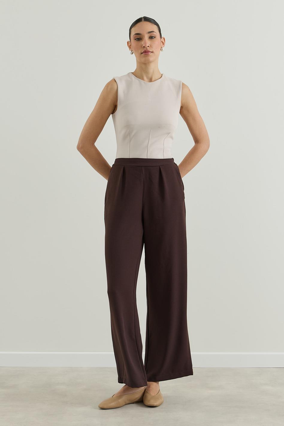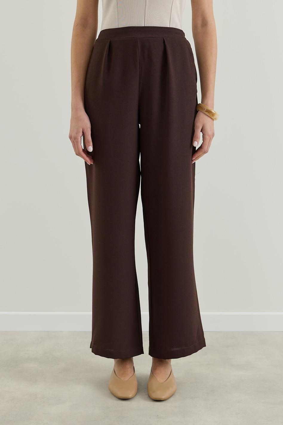 Krep Palazzo Pantolon Kahverengi