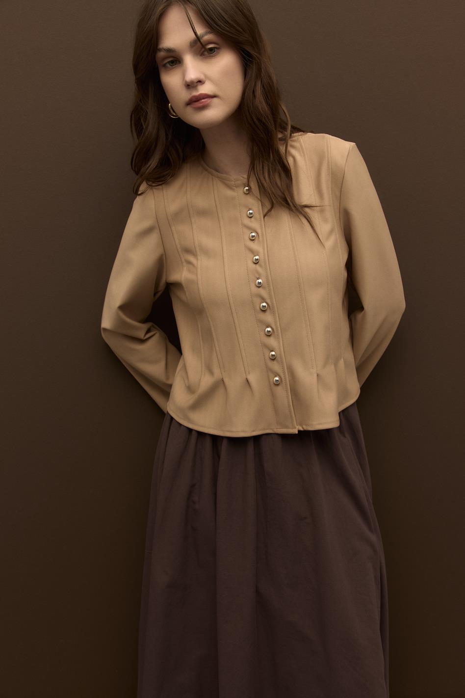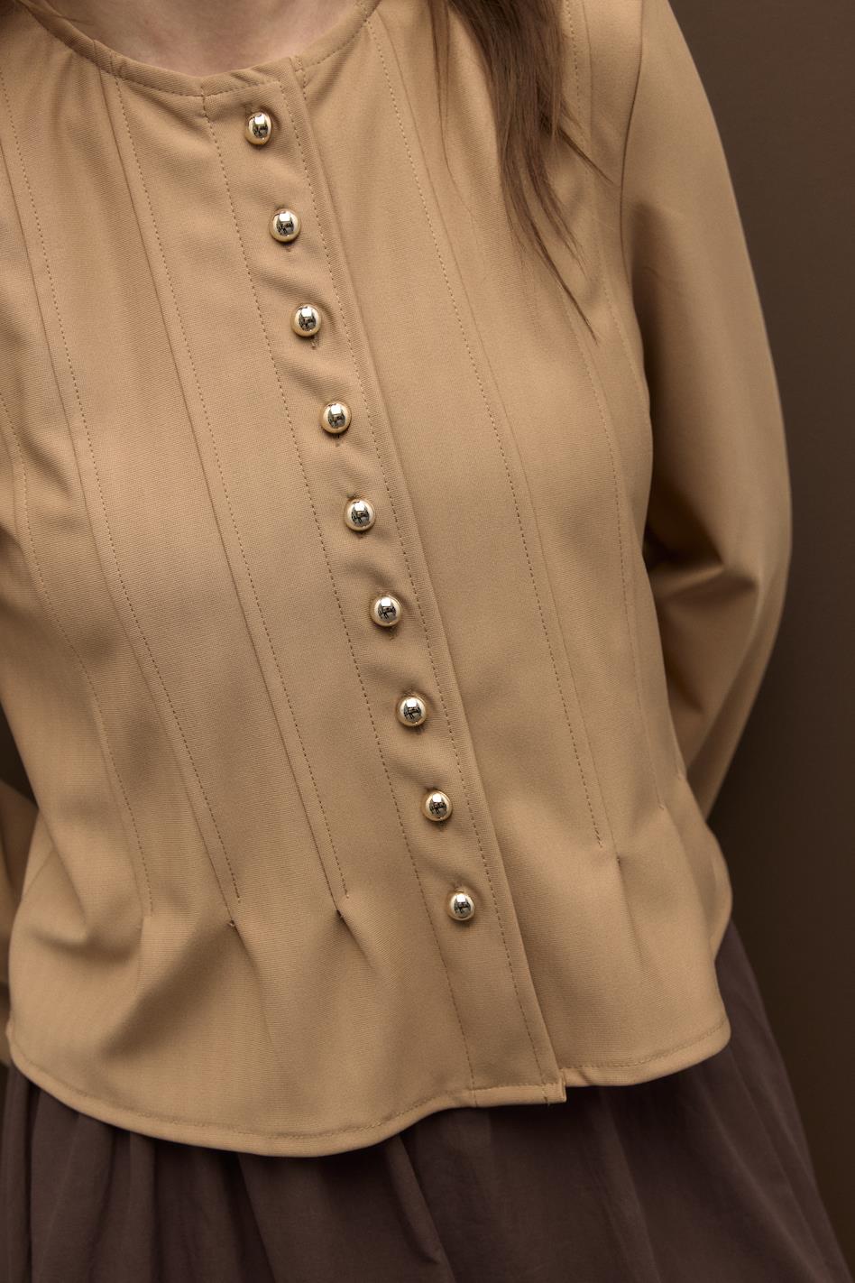 ön ve arkası nervür detaylı top düğmeli