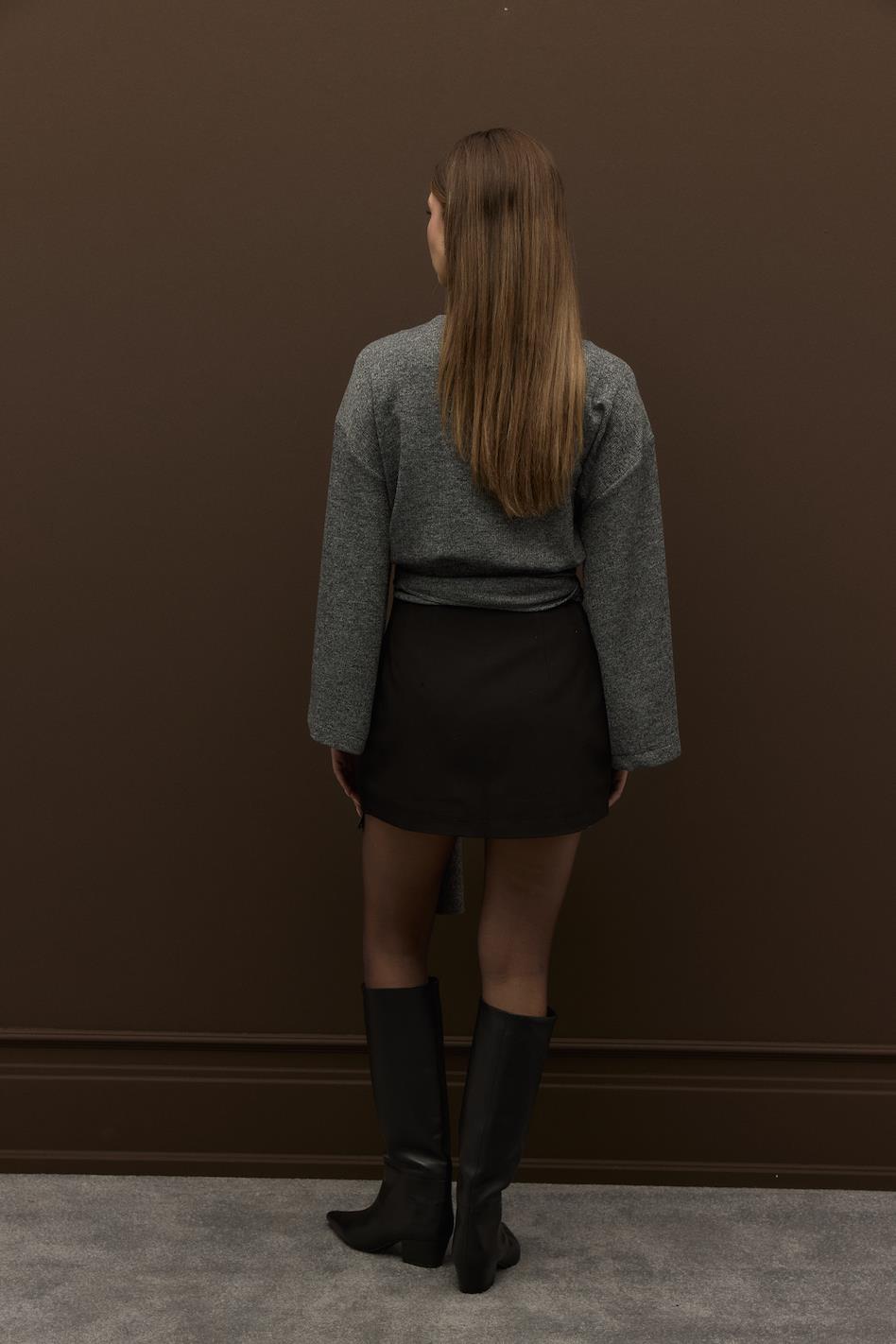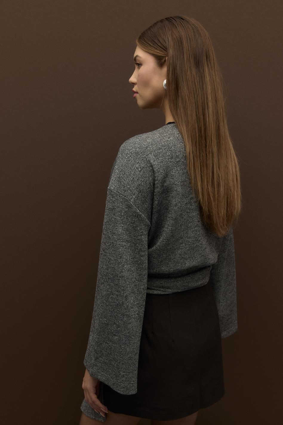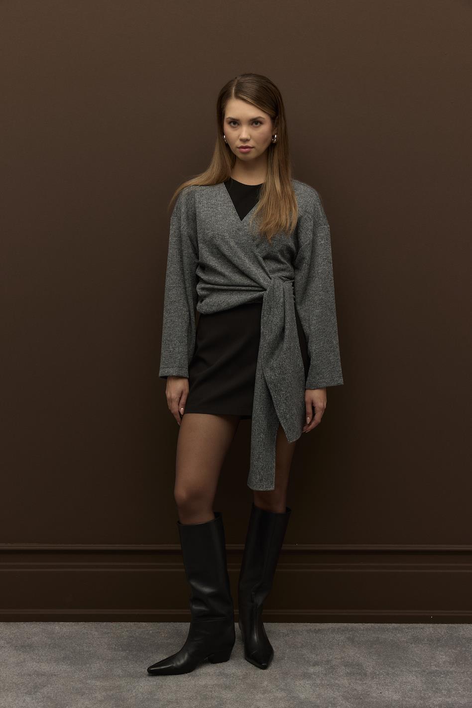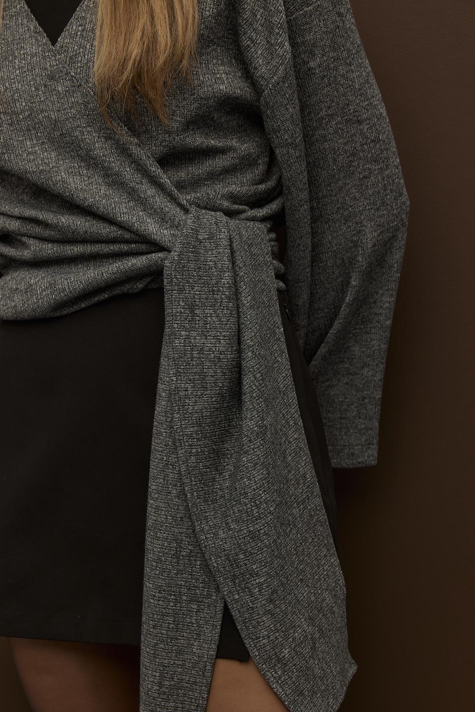 Noble Örme Kumaş Bağlamalı Hırka Melanj Gri