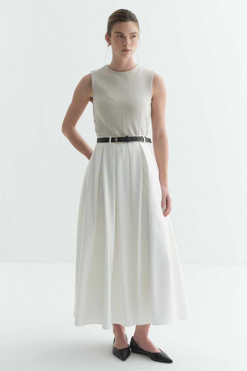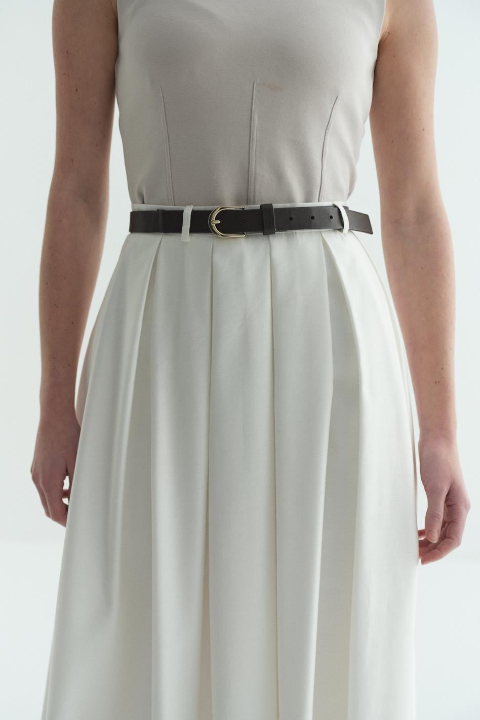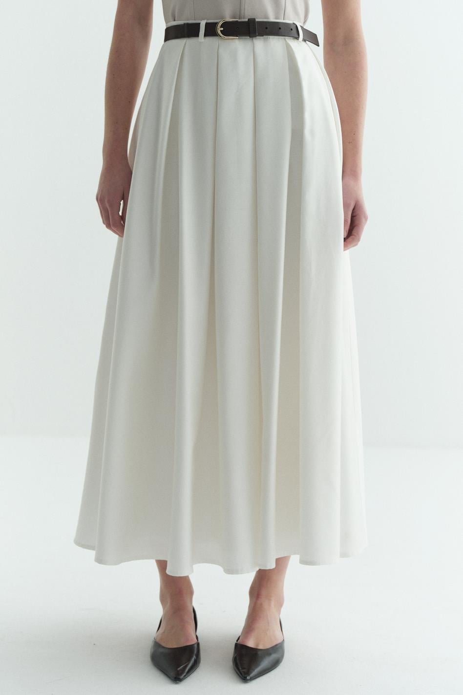 Pilikaşeli Astarlı Etek Beyaz