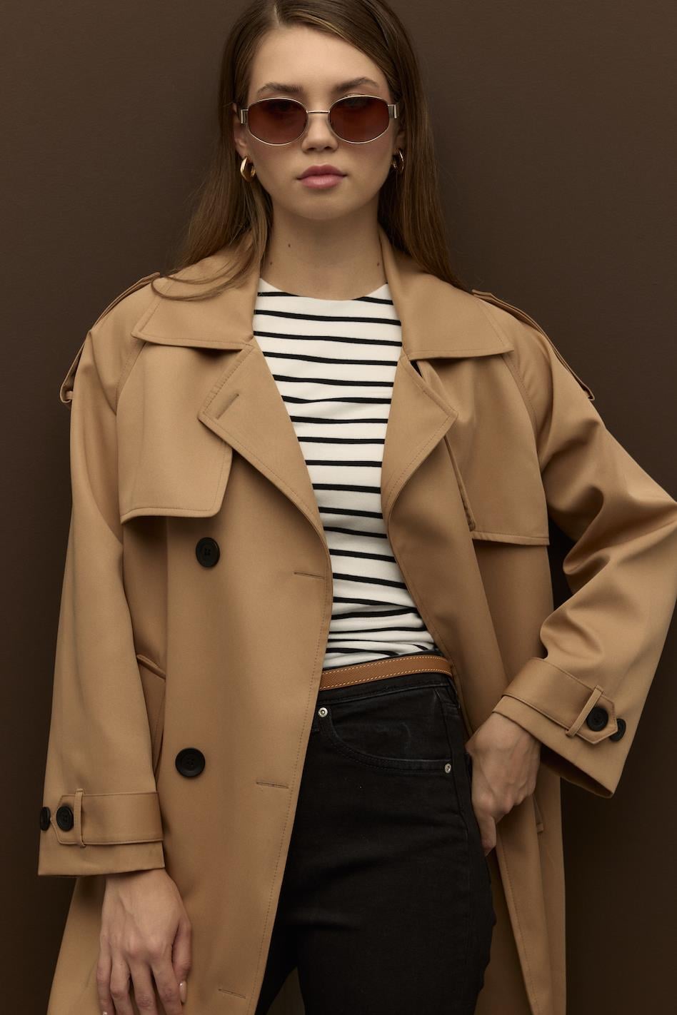 Raina Pamuk Gabardin Kruvaze Trençkot Camel