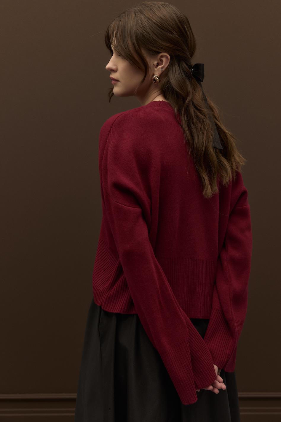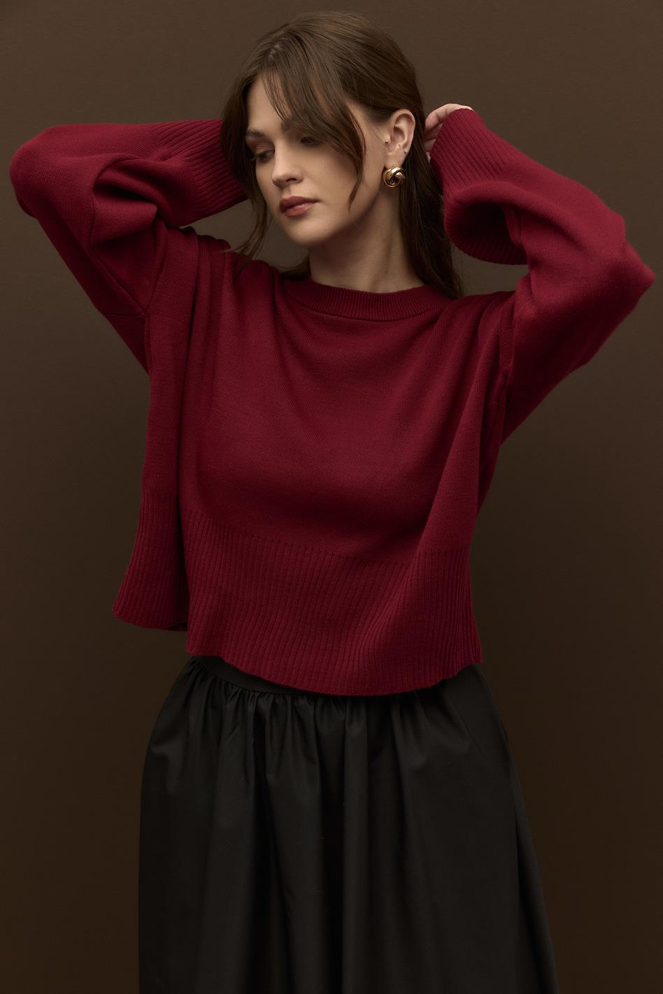 Ribana Geçişli Cropped Triko Kazak Bordo