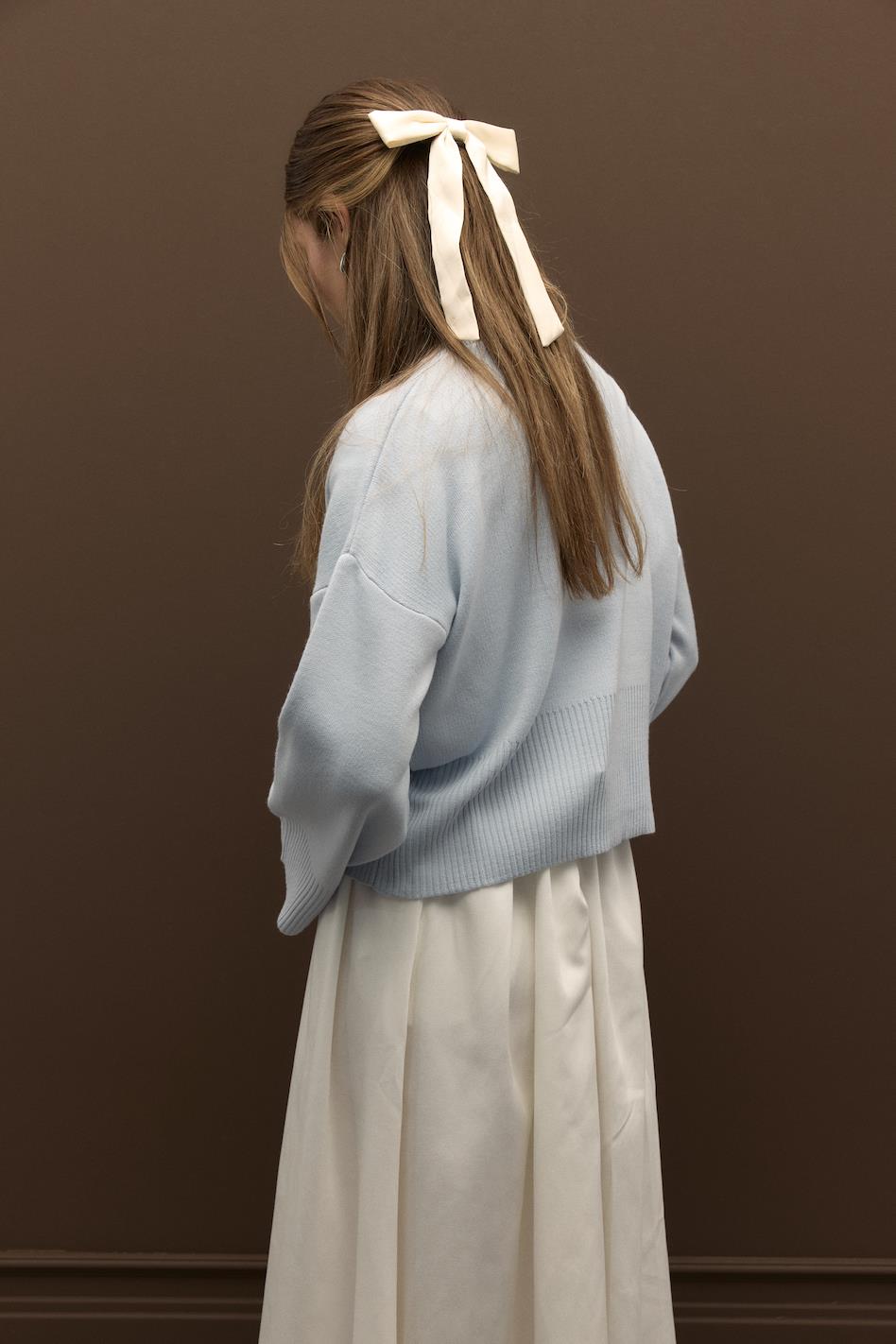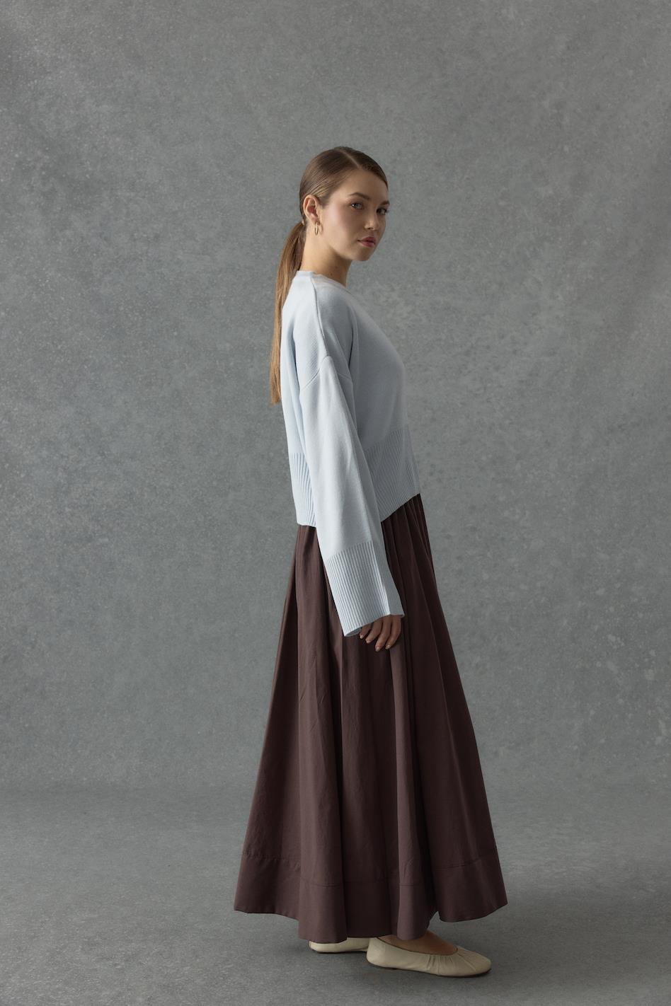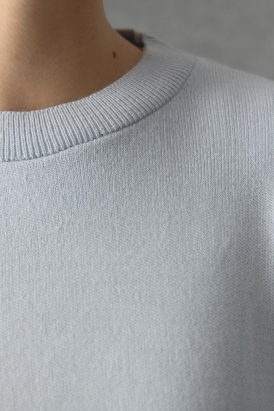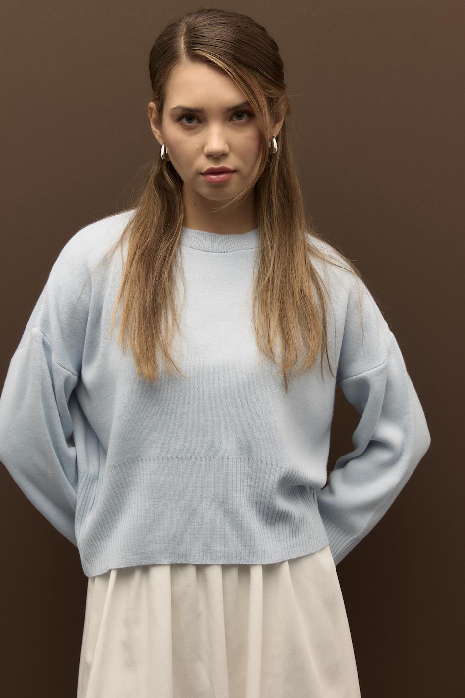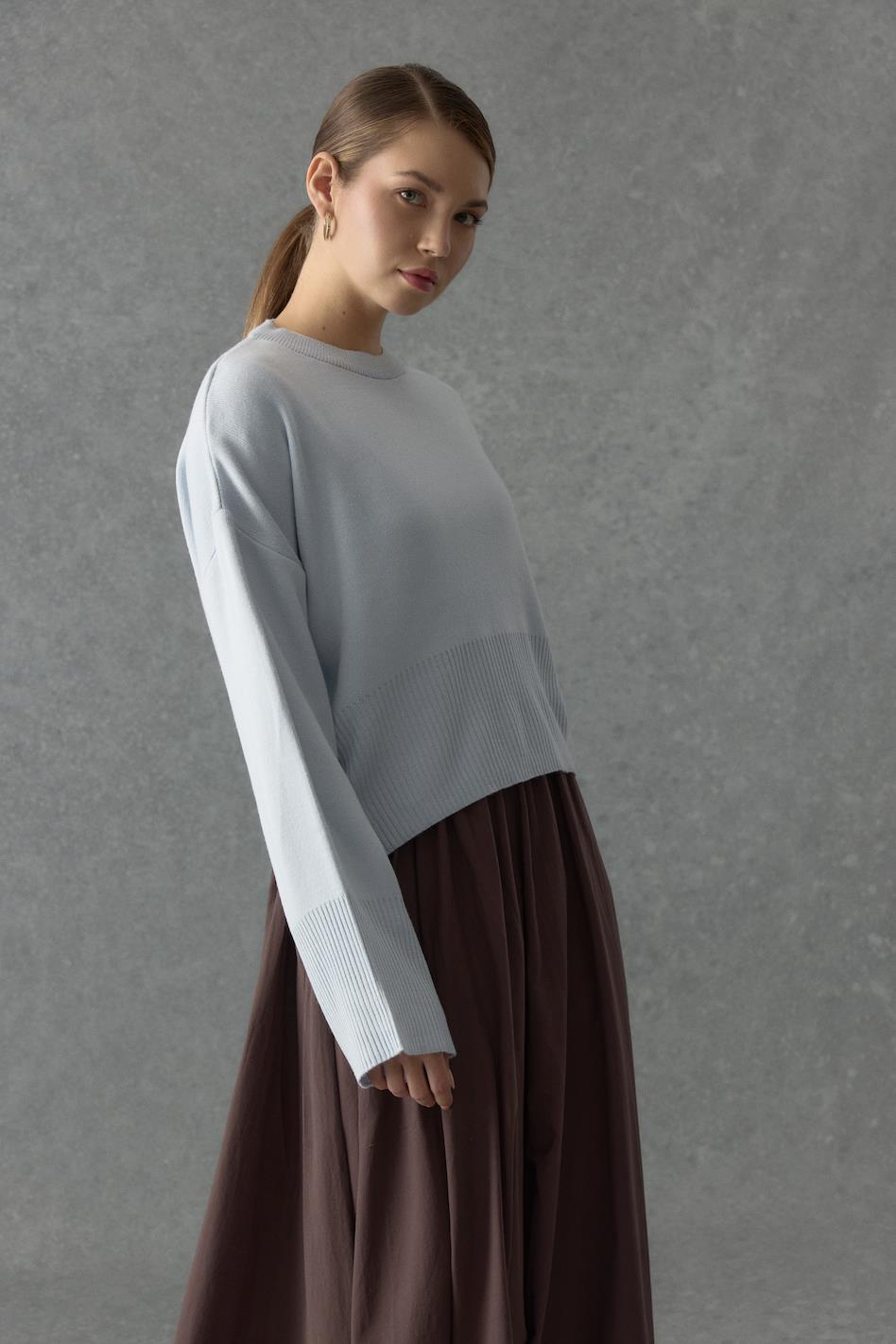 Ribana Geçişli Cropped Triko Kazak Mavi